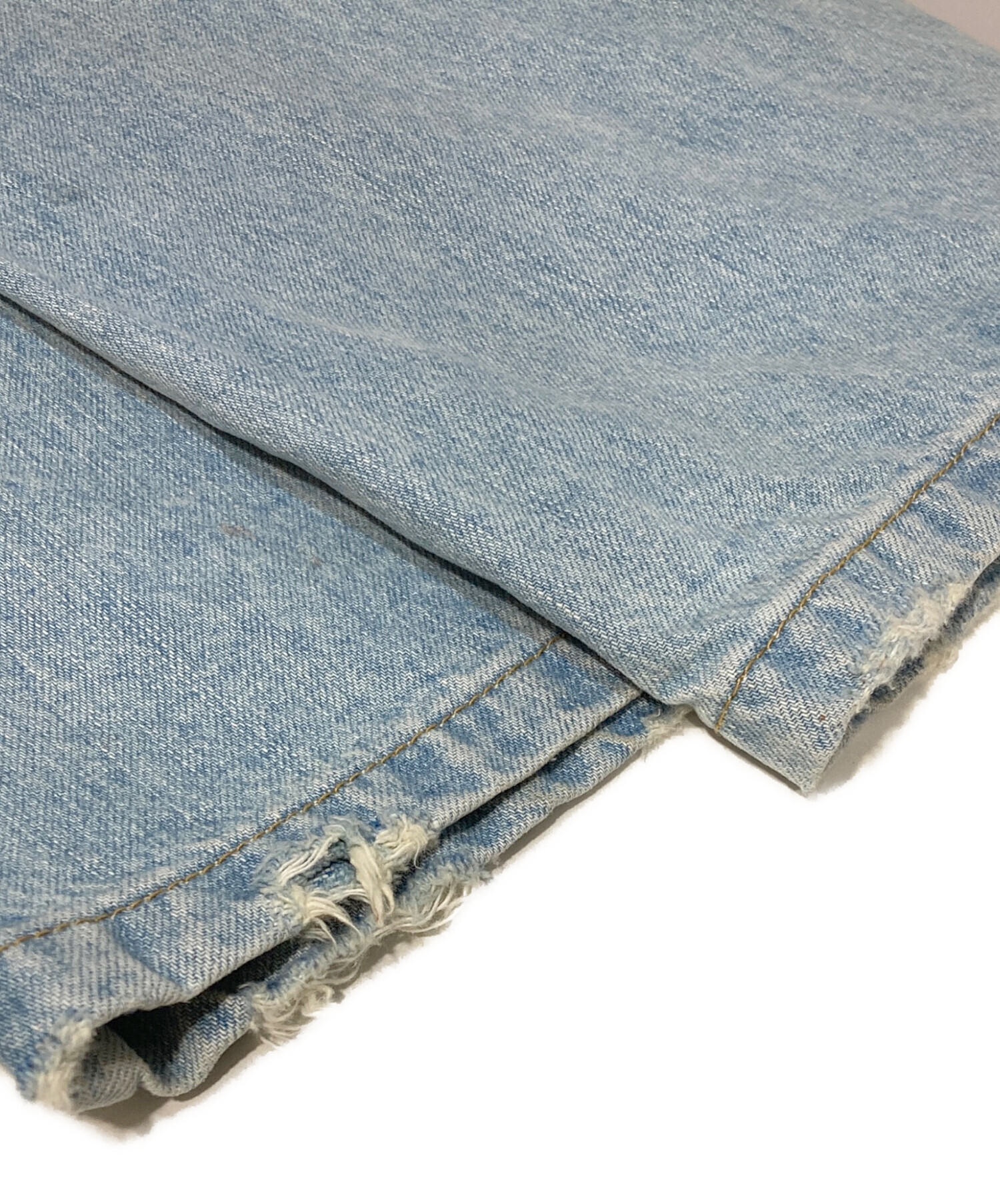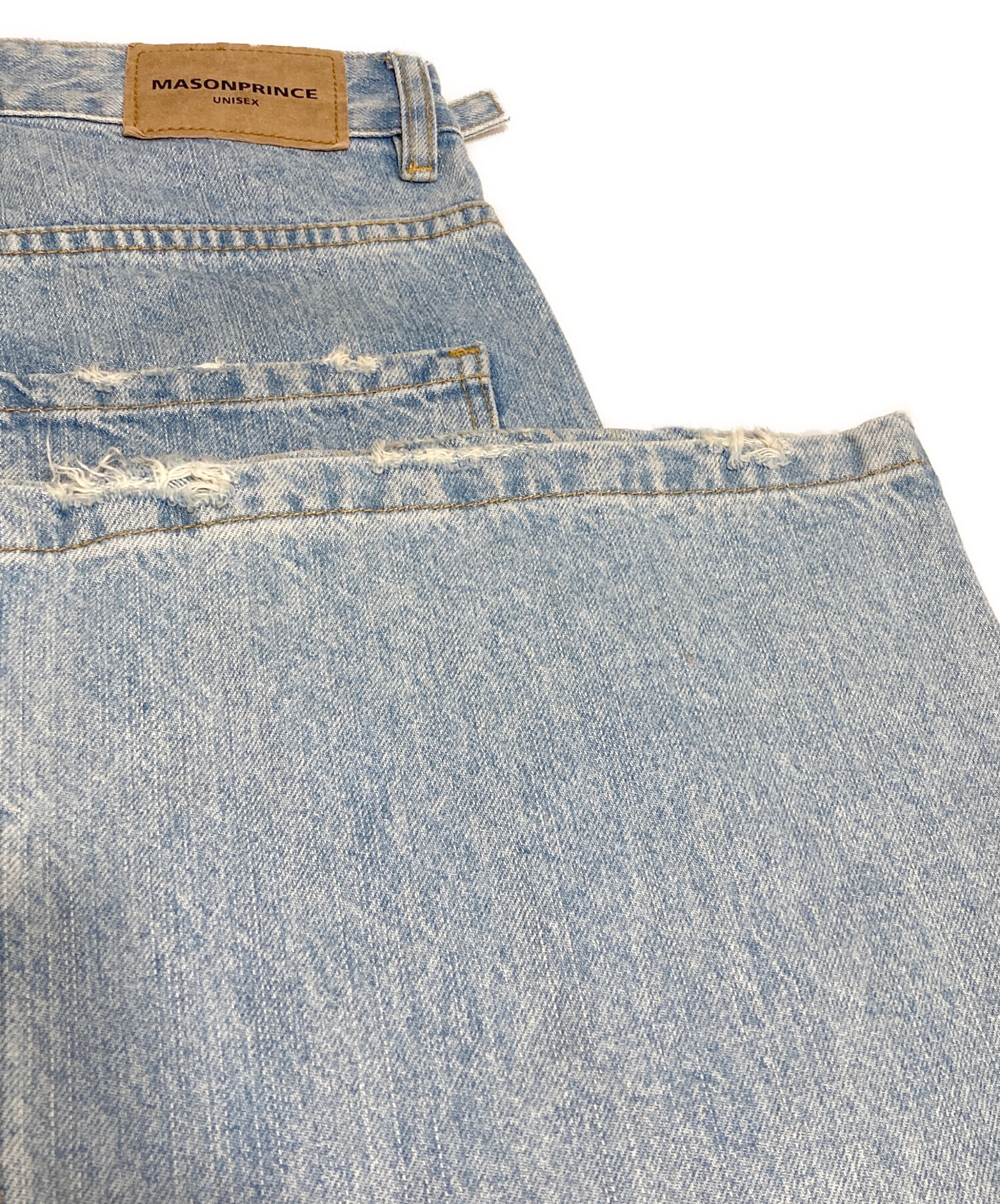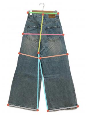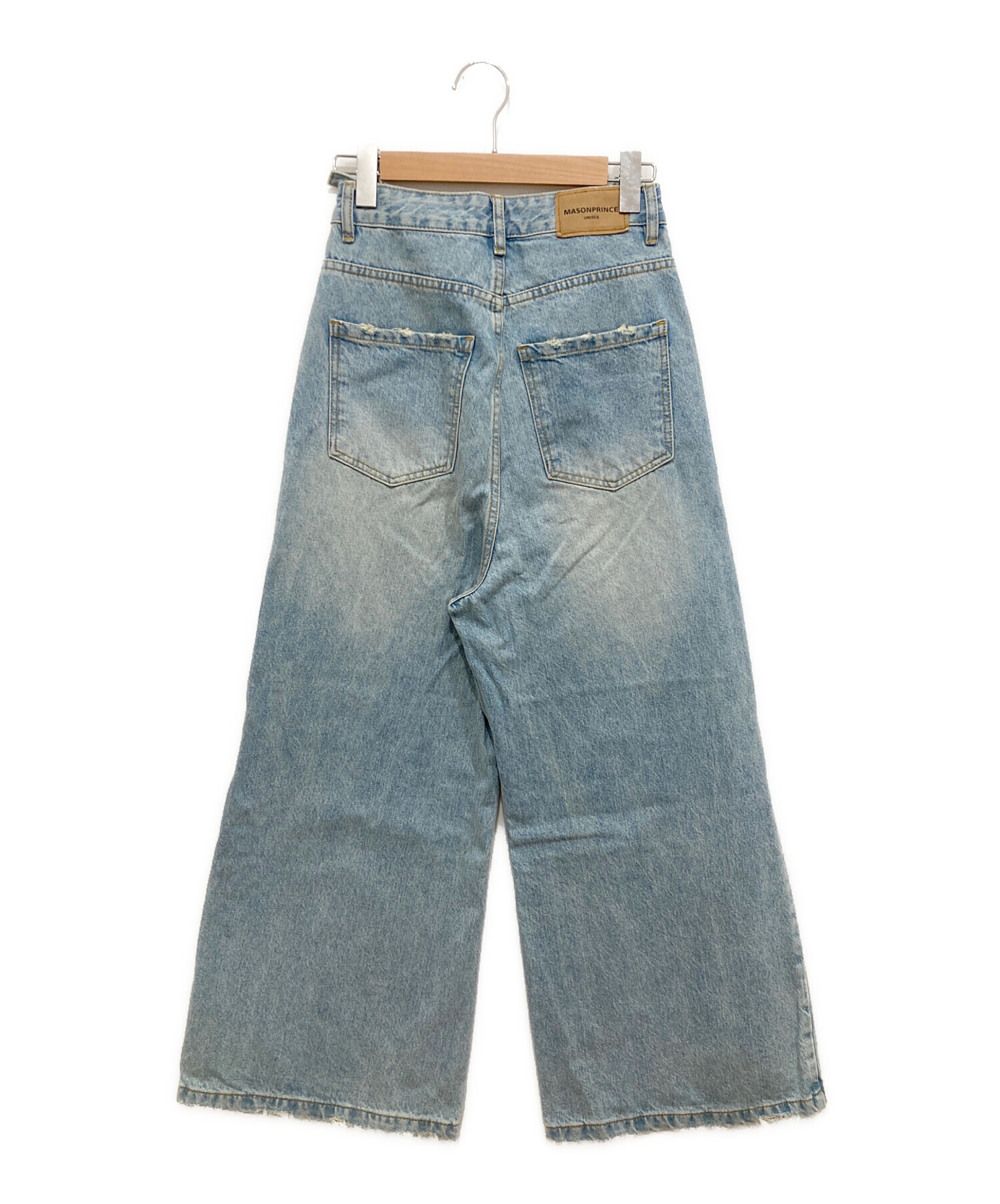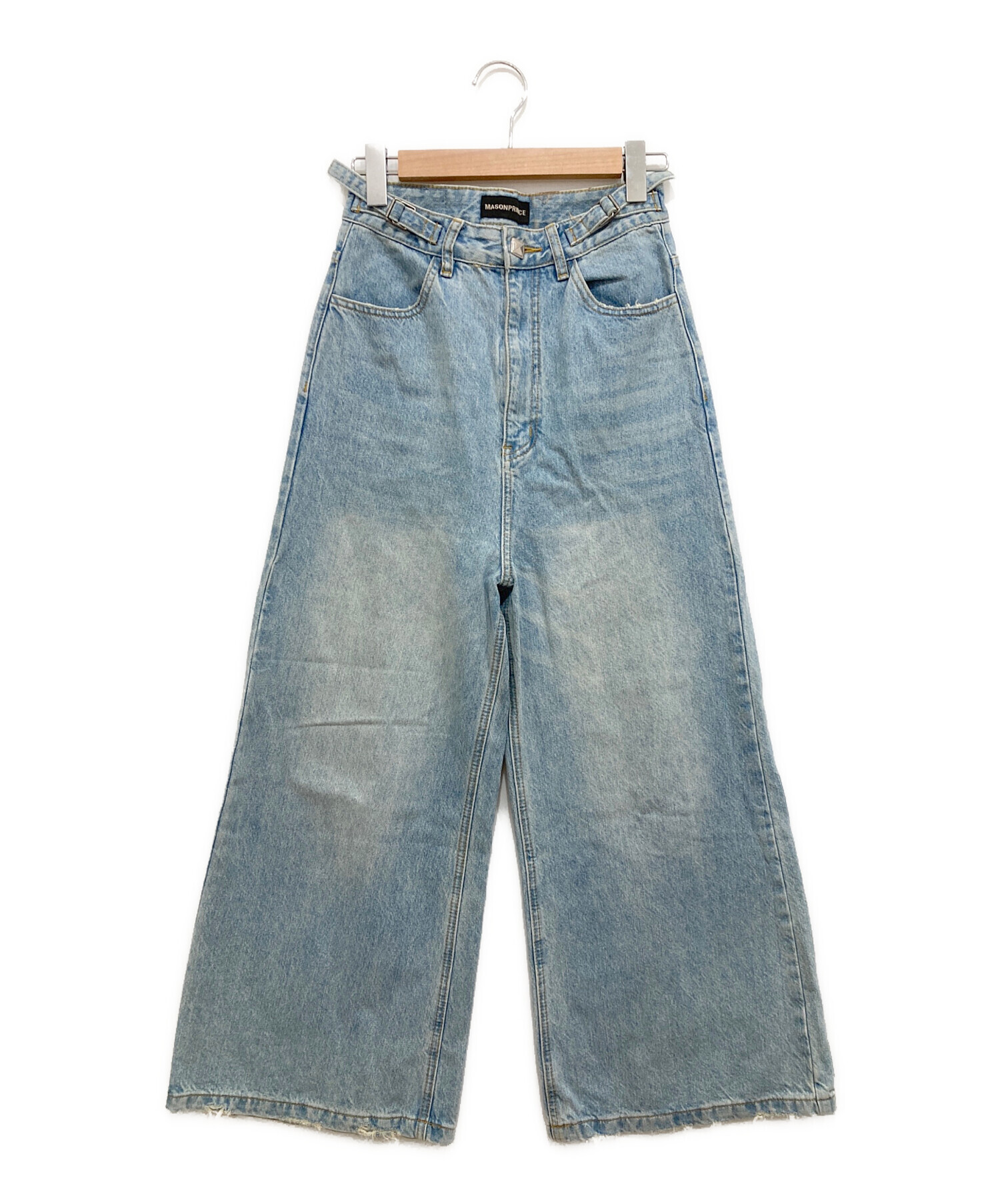 • masonprince(メゾンプリンス)MASONPRINCE (メゾンプリンス) サイドベルトワイドフレアデニムパンツ ブルー サイズ:Sの古着・服飾アイテム 裾ダメージ有