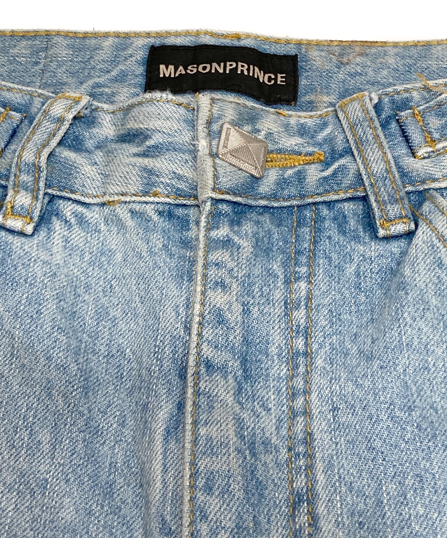 • masonprince(メゾンプリンス)MASONPRINCE (メゾンプリンス) サイドベルトワイドフレアデニムパンツ ブルー サイズ:Sの古着・服飾アイテム ウエスト付近ヨゴレ有