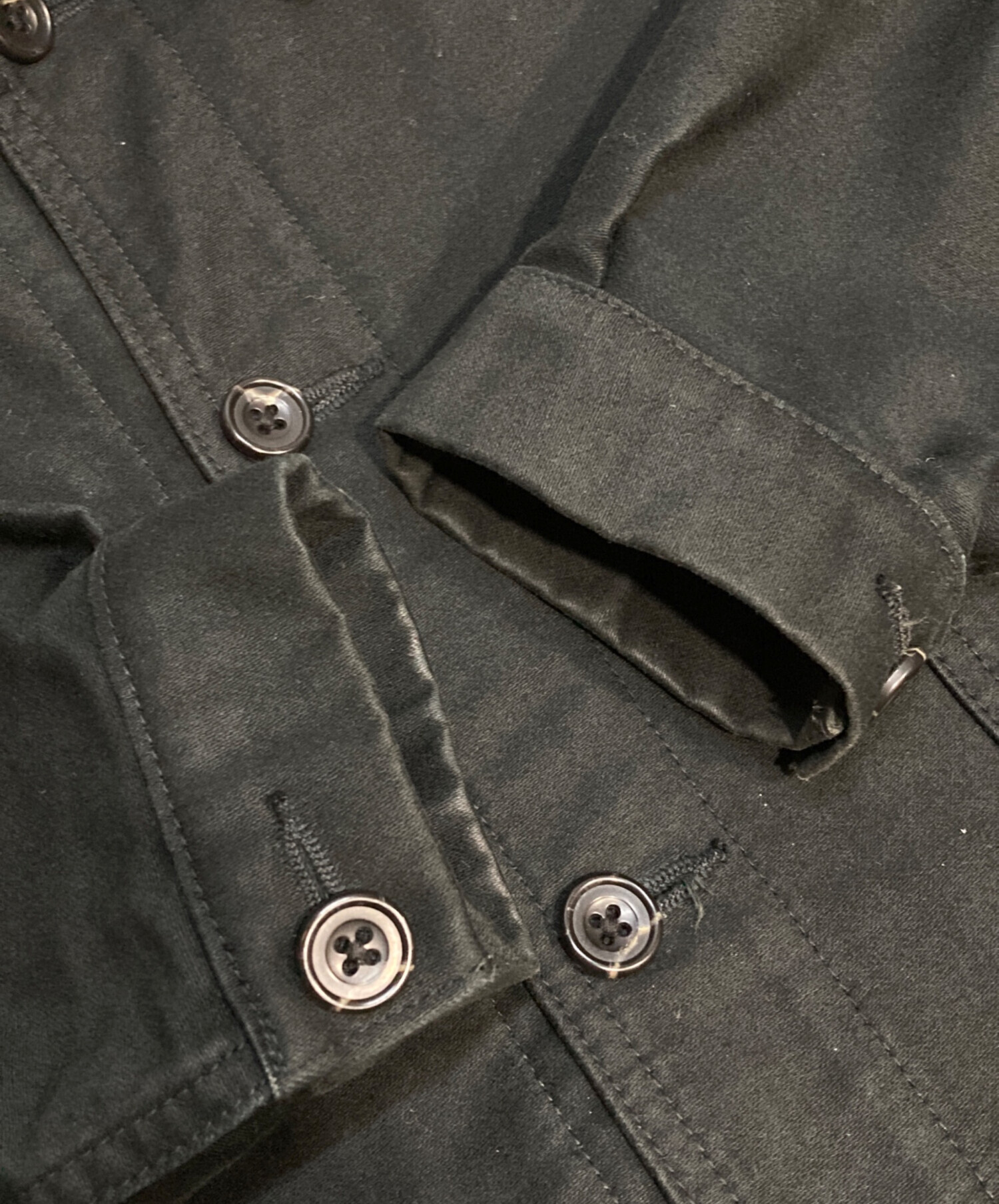 目立つシミや汚れ、におい等がある場合は商品画像や説明文にて極力表記させていただいておりますが、中古品という商品の特性上、全ての瑕疵や不備、洋服直し箇所を撮影・記載をすることは難しくなっております。また、ほとんどのアイテムは店頭と併売しておりますため、出品掲載時からコンディションが変動している場合もございます。あらかじめご了承くださいませ。