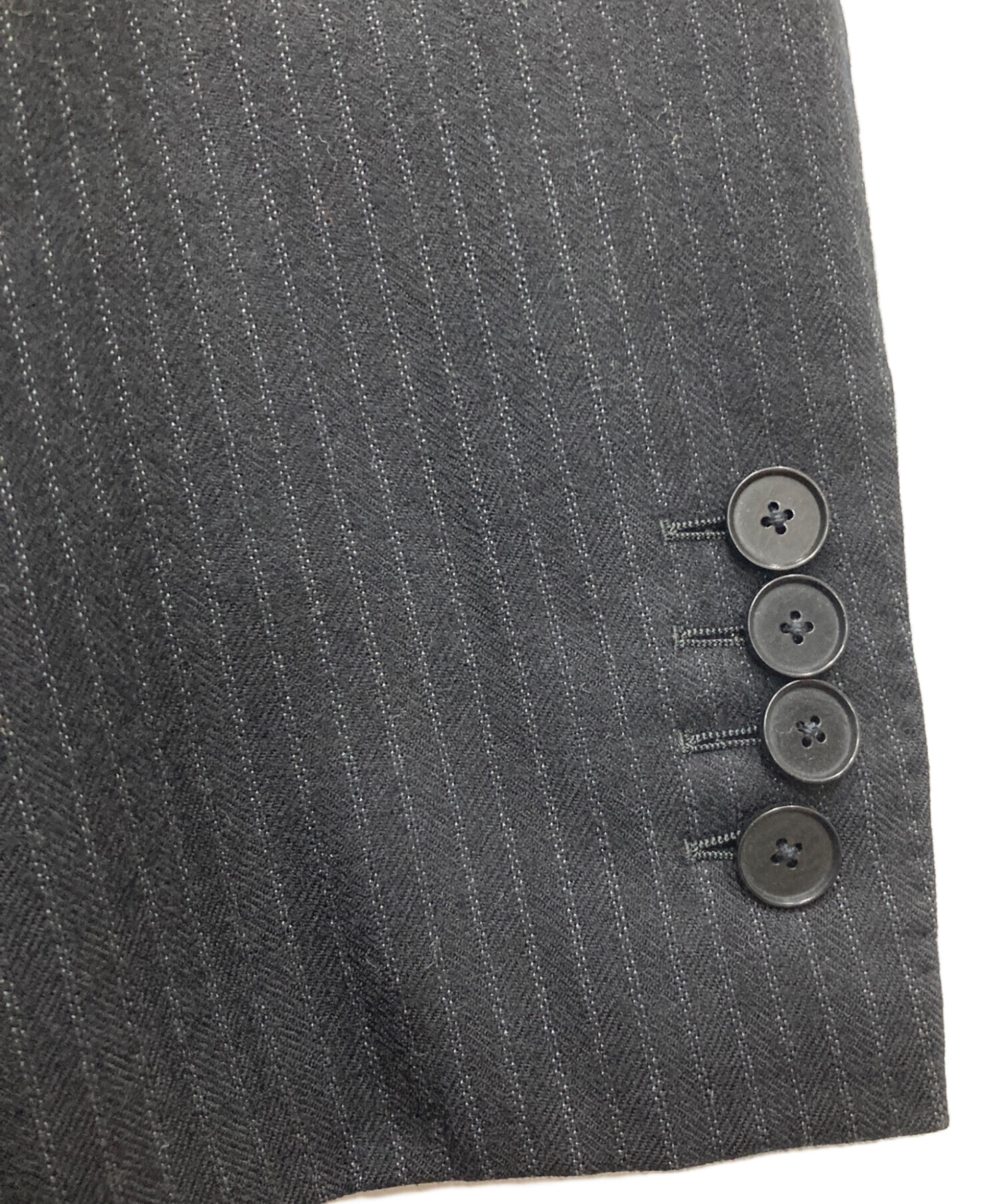 | 状態 | こちらの商品は中古品の為、使用に伴います細かなキズ、汚れがございます。店頭にて展示販売を行っている為、記載に無い細かなキズ、汚れが見受けられる場合がございます。 袖ボタン1つ欠品 パンツ内部生地のアタリあり パンツポケット付近にホツレ |