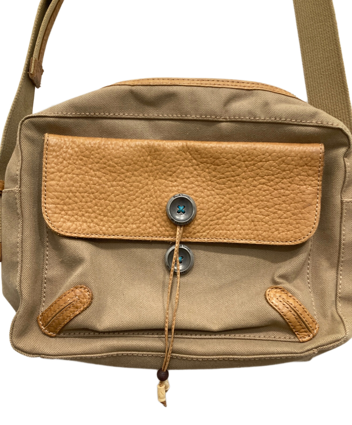 キャンバス×レザーショルダーバッグ