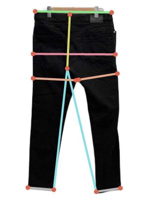 ウエスト周り約82.5cm ヒップ周り約99.5cm もも周り約57.5cm 裾周り約31.5cm 股上(後ろ)約31.5cm 股下(後ろ)約68cm