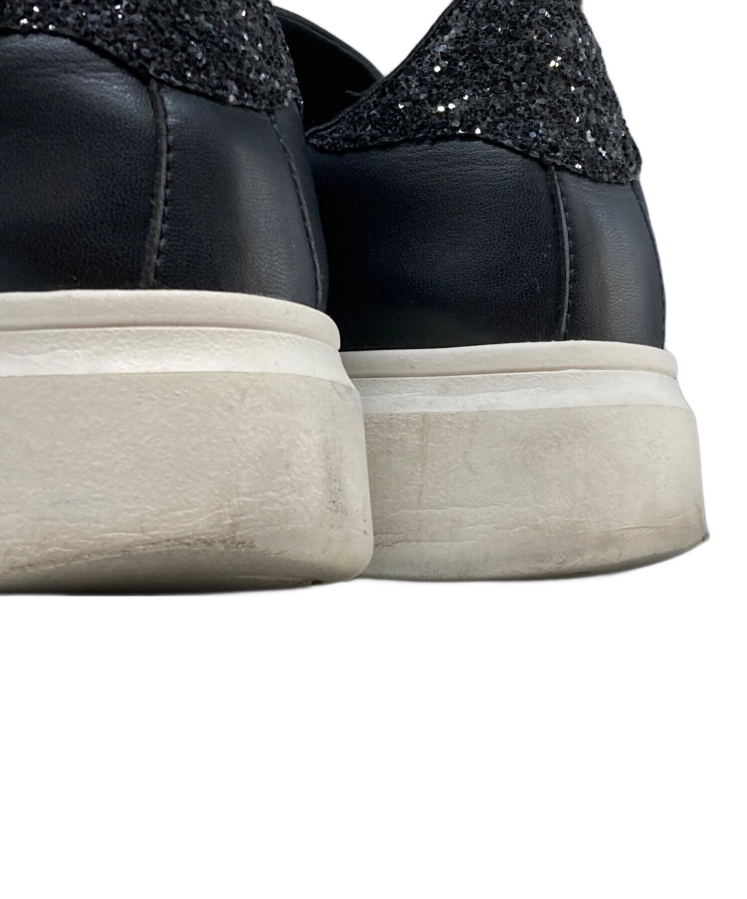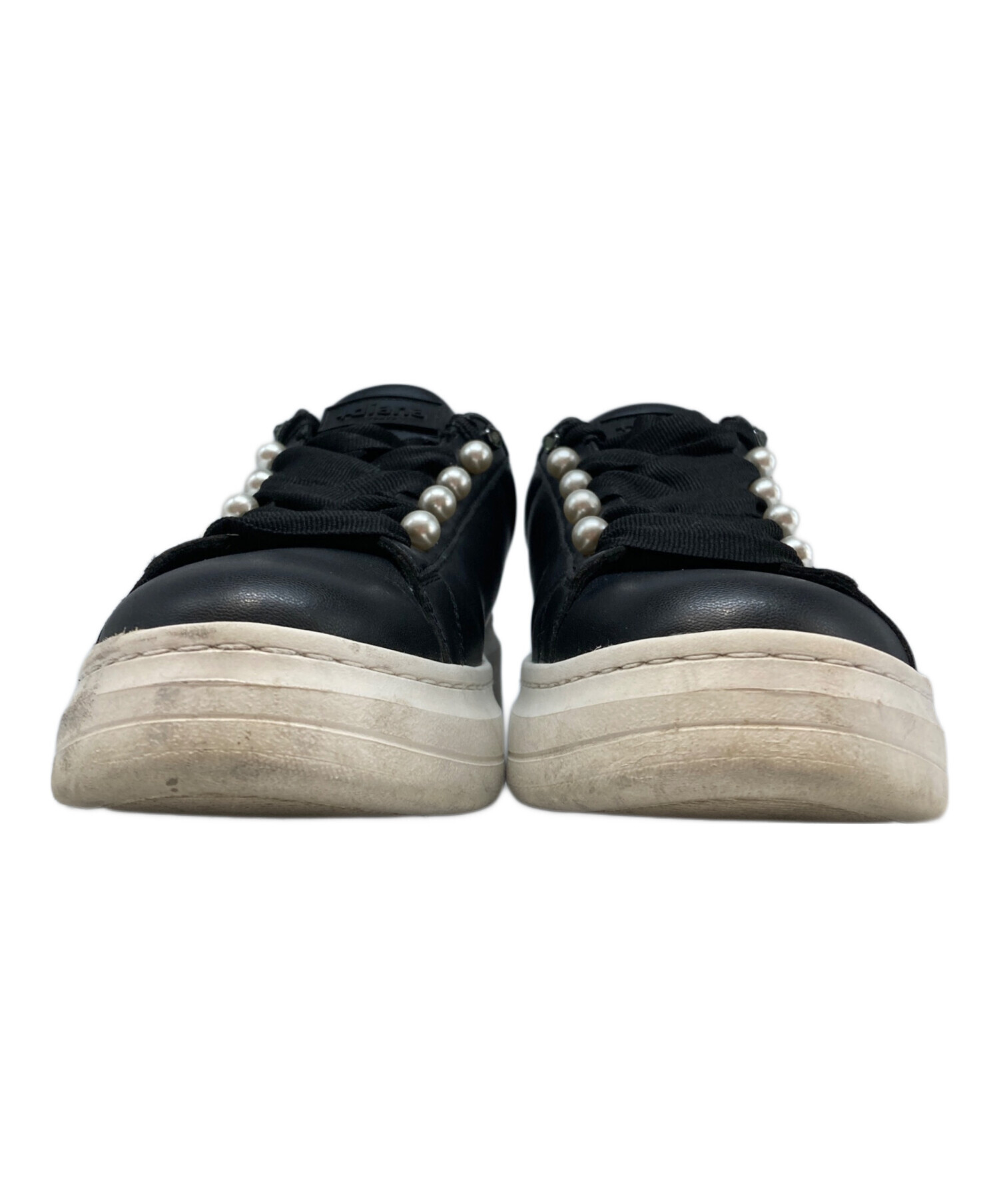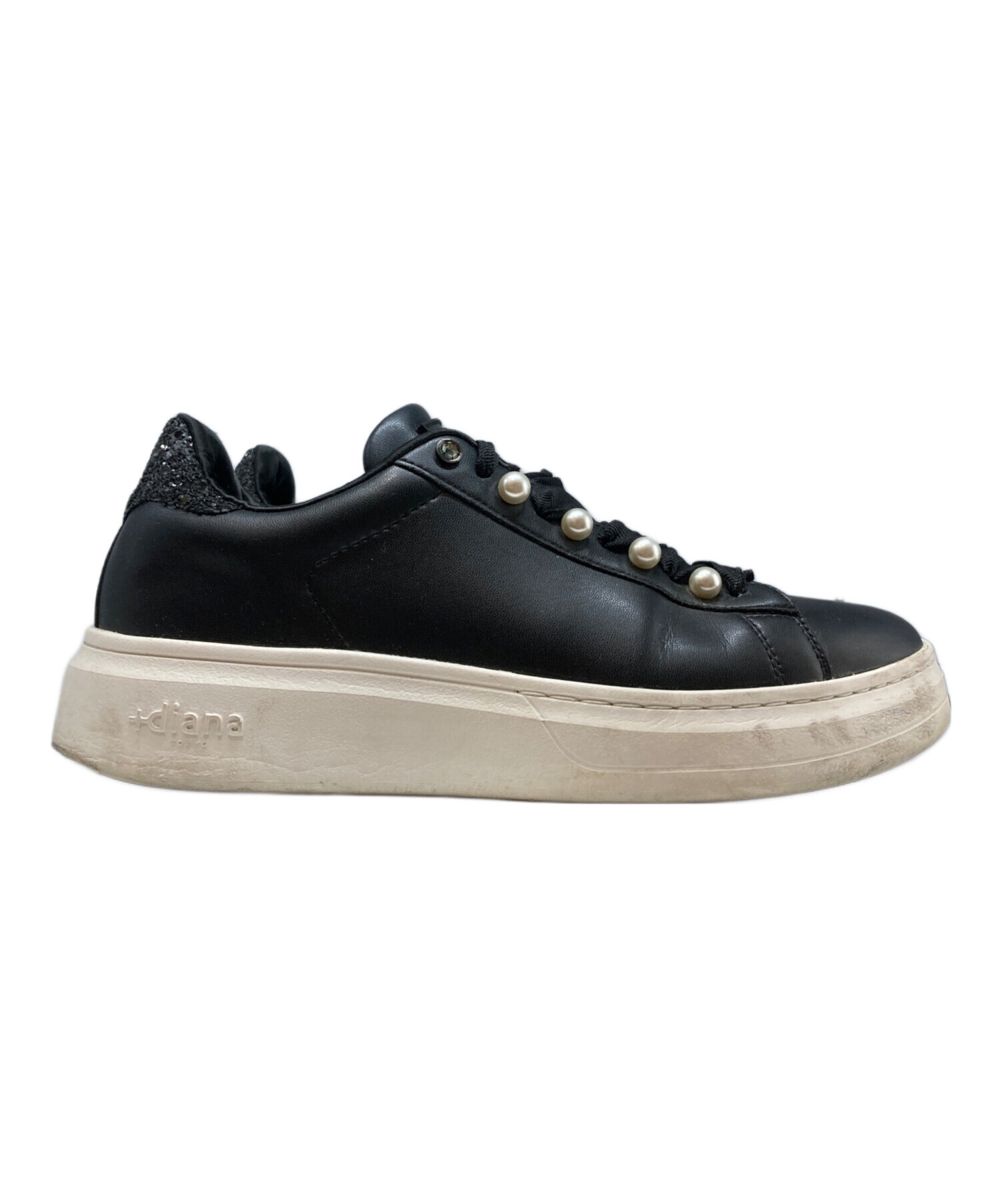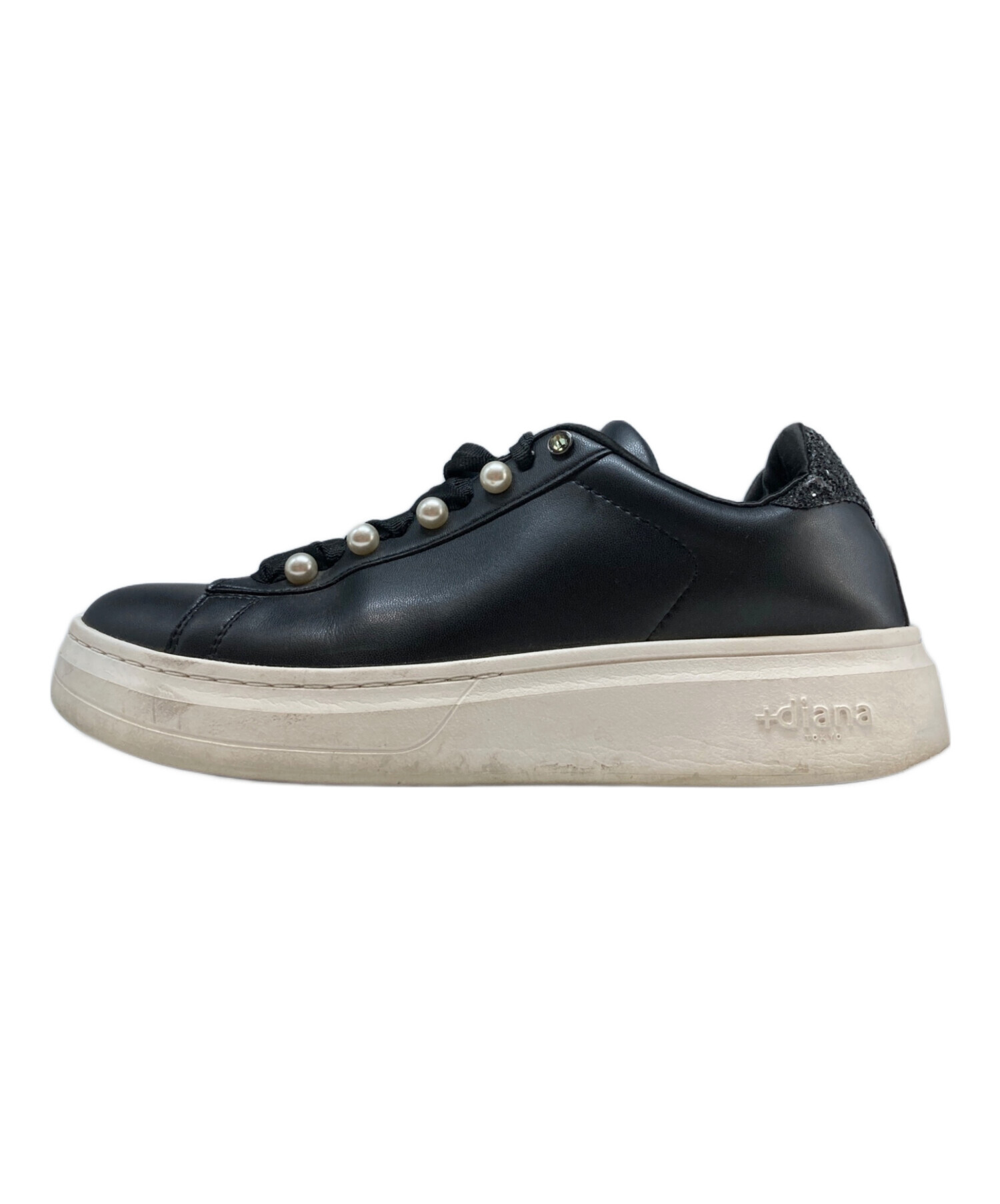 • +DIANA(プラスダイアナ)+DIANA (プラスダイアナ) パールボタン付きスニーカー ブラック×ホワイト サイズ:24.5cmの古着・服飾アイテム ソール減り