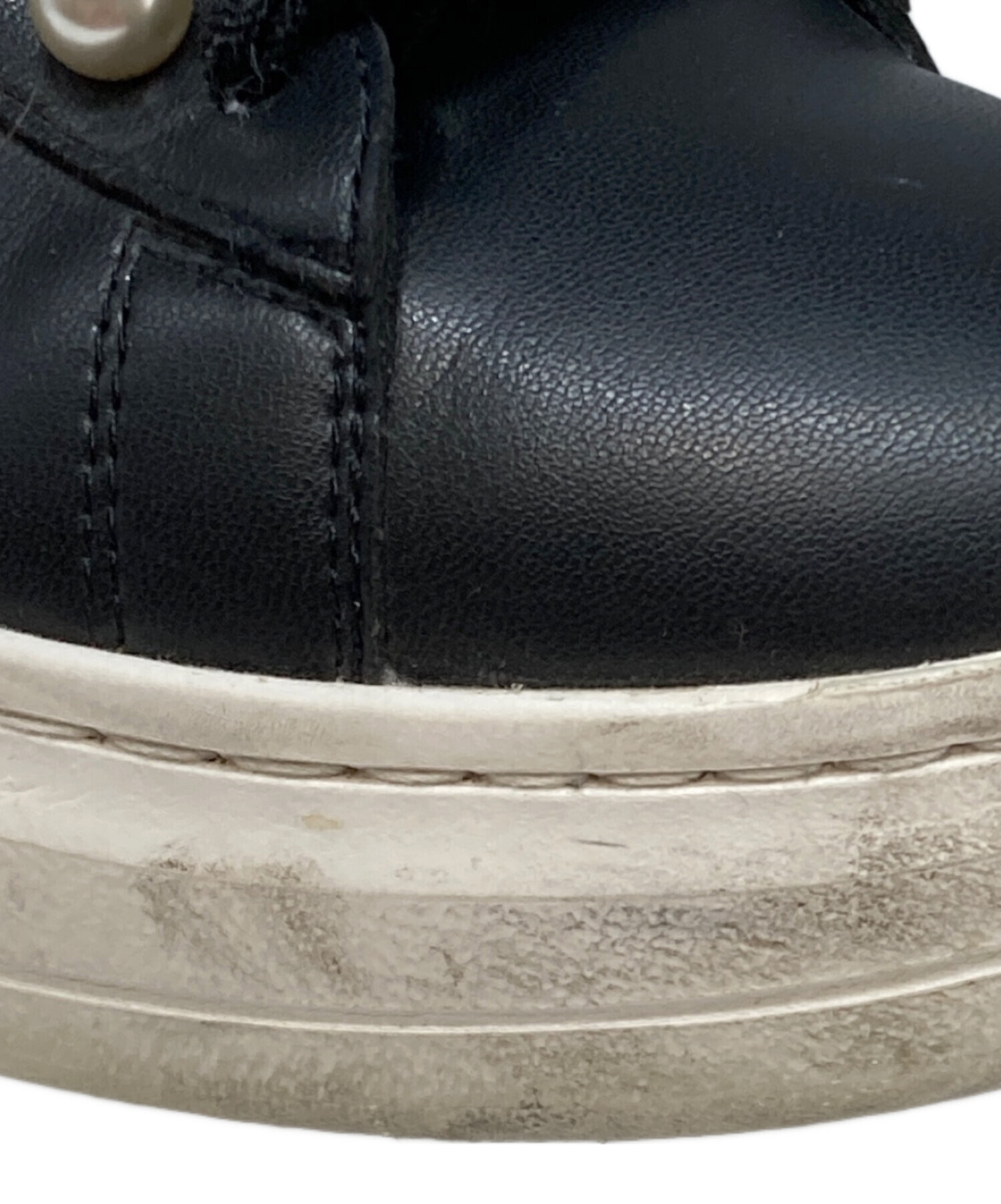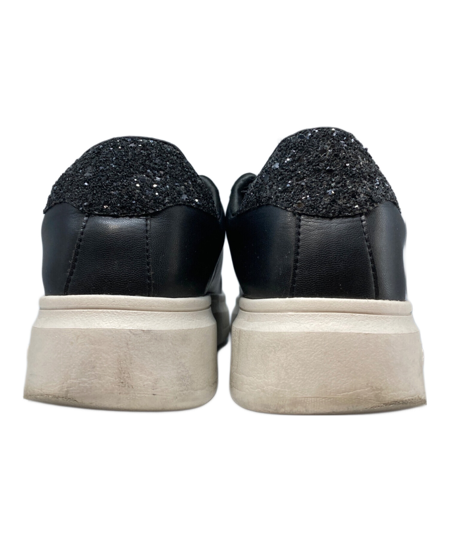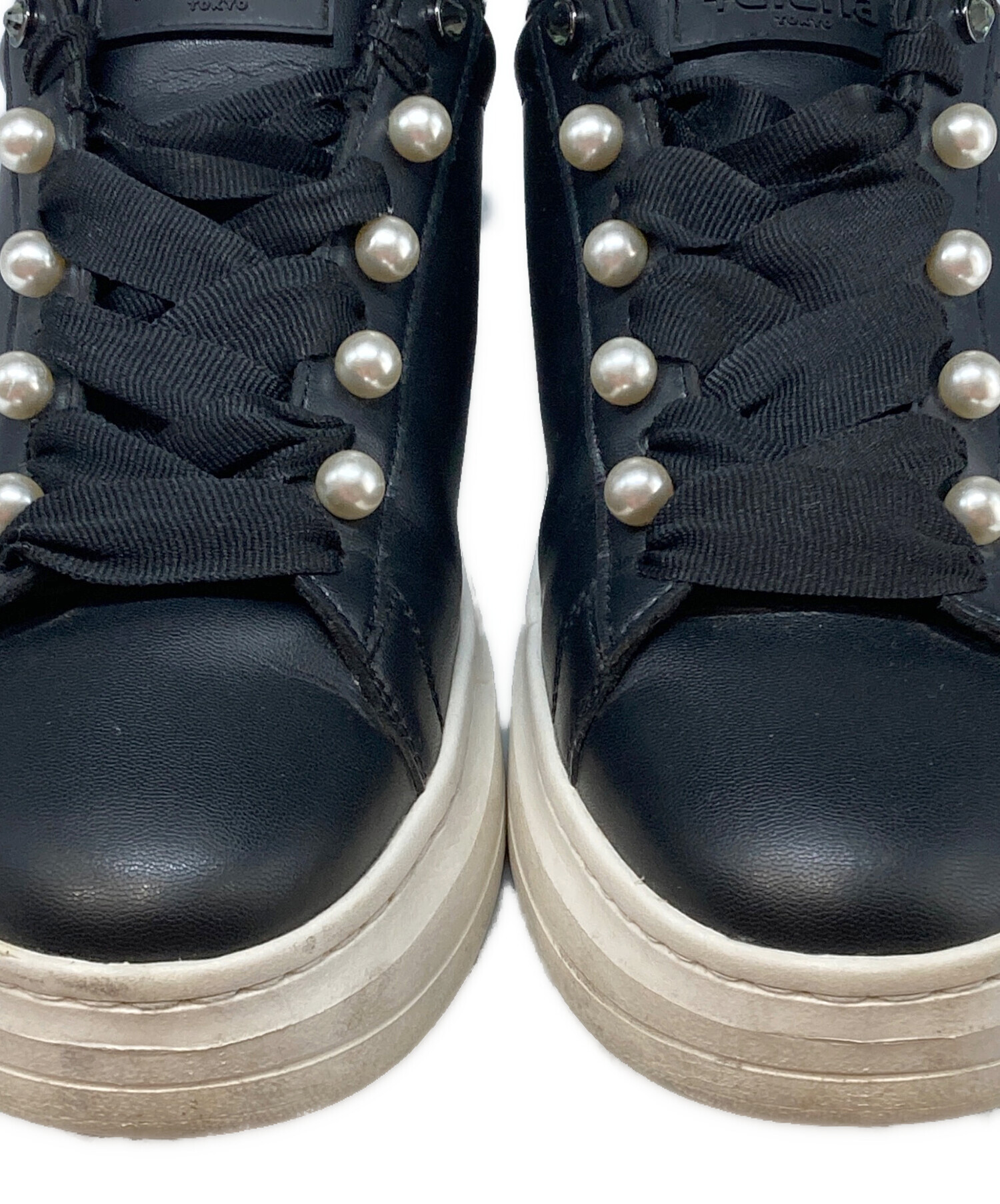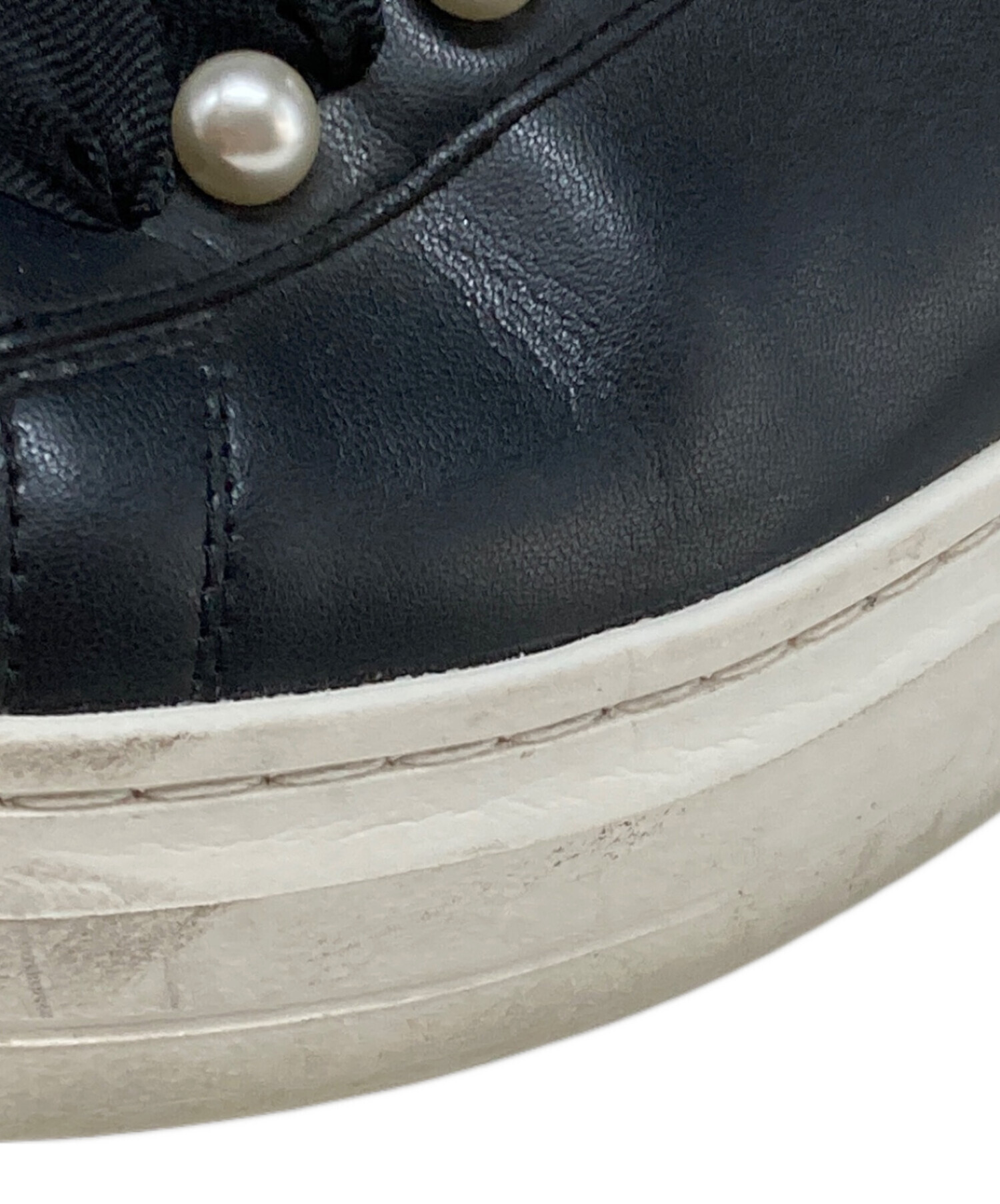 • +DIANA(プラスダイアナ)+DIANA (プラスダイアナ) パールボタン付きスニーカー ブラック×ホワイト サイズ:24.5cmの古着・服飾アイテム ソール減り