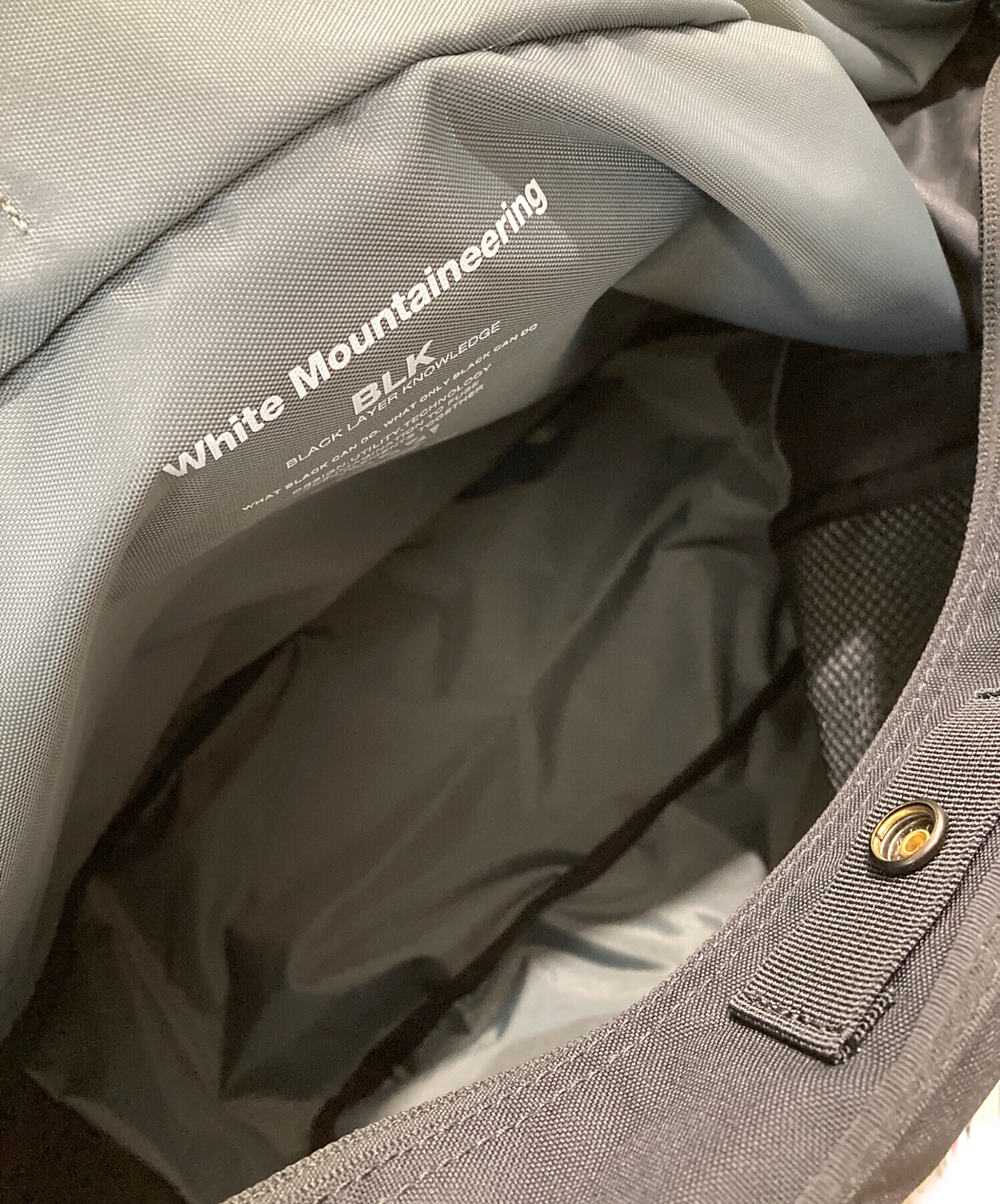 • WHITE MOUNTAINEERING(ホワイトマウンテ二アニング)WHITE MOUNTAINEERING (ホワイトマウンテ二アニング) BRIEFING (ブリーフィング) HOBO SHOULDER TALL/ショルダーバッグ ブラックの古着・服飾アイテム 若干のスレ」、ヨゴレ有