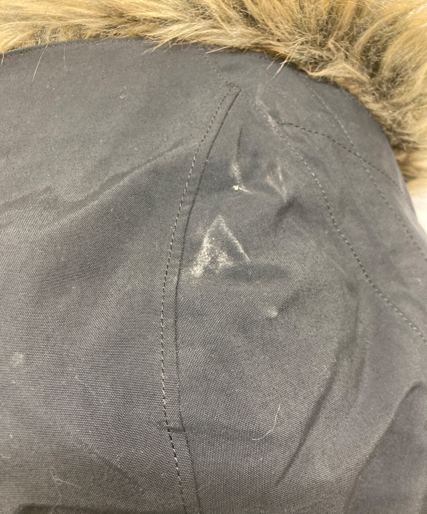 | 素材 | 表地: ナイロン 100% 中わた: ダウン 72% レーヨン 20% その他の羽毛 8% 表地: ポリエステル 100% 袖口 アクリル 59% 毛 26% ナイロン 14% ポリウレタン 1% ファー部分 パイル アクリル系 80% アクリル 20% 基布 ポリエステル 100% |