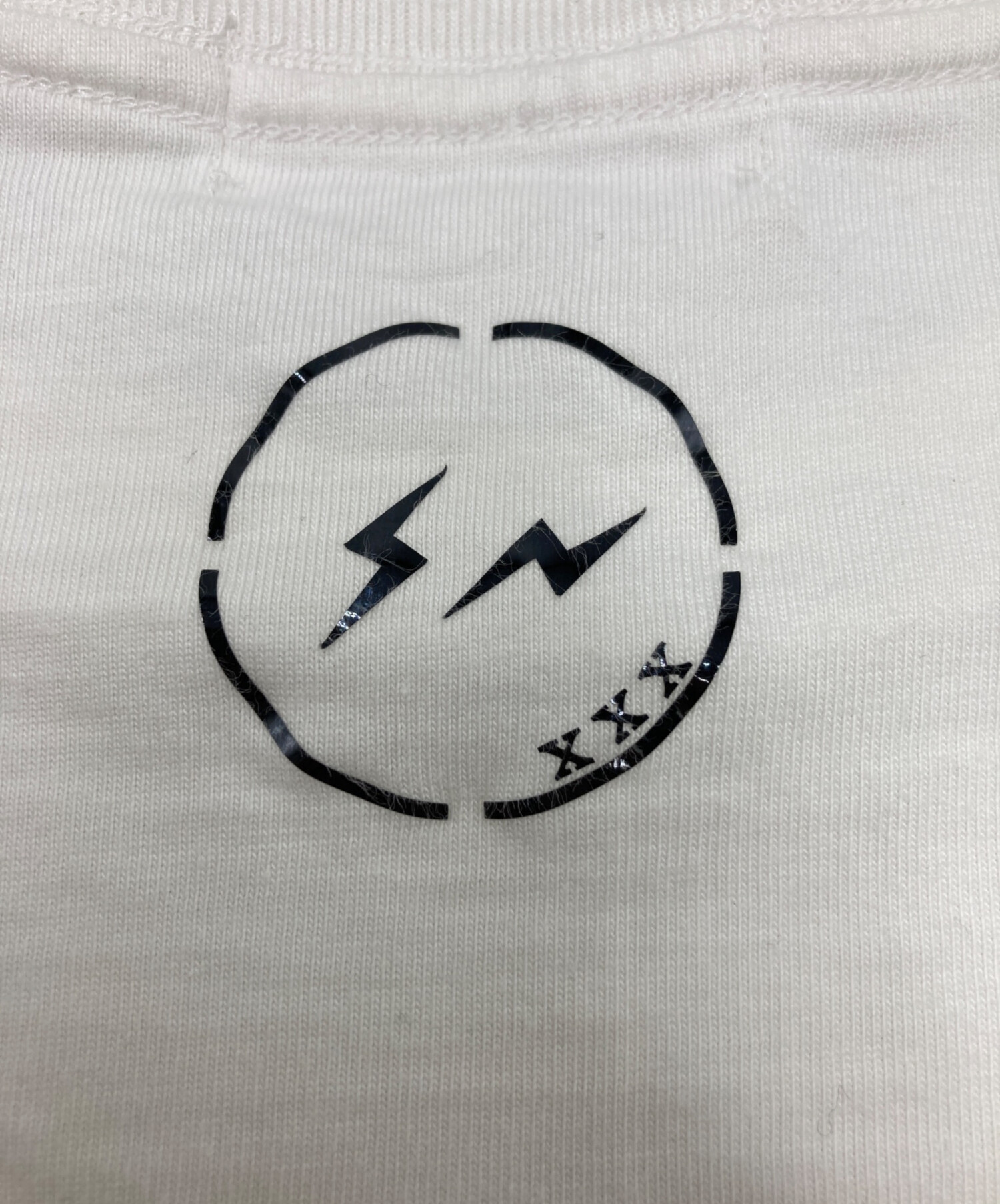 • GOD SELECTION XXX(ゴッドセレクショントリプルエックス)GOD SELECTION XXX (ゴッドセレクショントリプルエックス) FRAGMENT DESIGN (フラグメントデザイン) ボックスロゴTシャツ ホワイト サイズ:SIZE XLの古着・服飾アイテム 襟元毛羽立ち・ヨゴレ