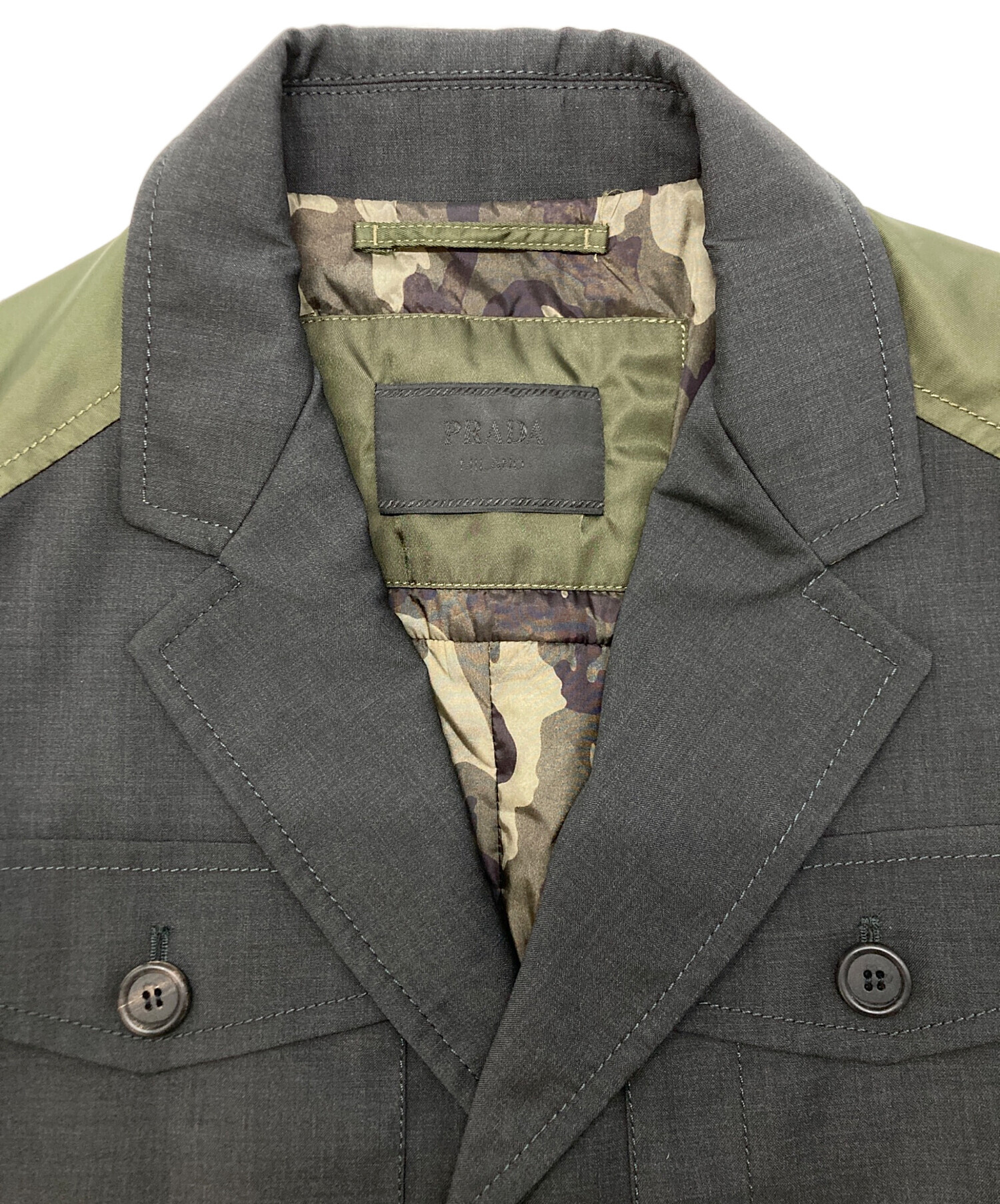| 素材 | 外生地100% バージンウール 内生地100% ナイロン ヨーク(前身頃および後身頃)100% ナイロンPU(ポリウレタン) 裏生地100%ナイロンPU(ポリウレタン) 見頃と袖の中綿100% ポリエステル 芯100% ポリエステル |