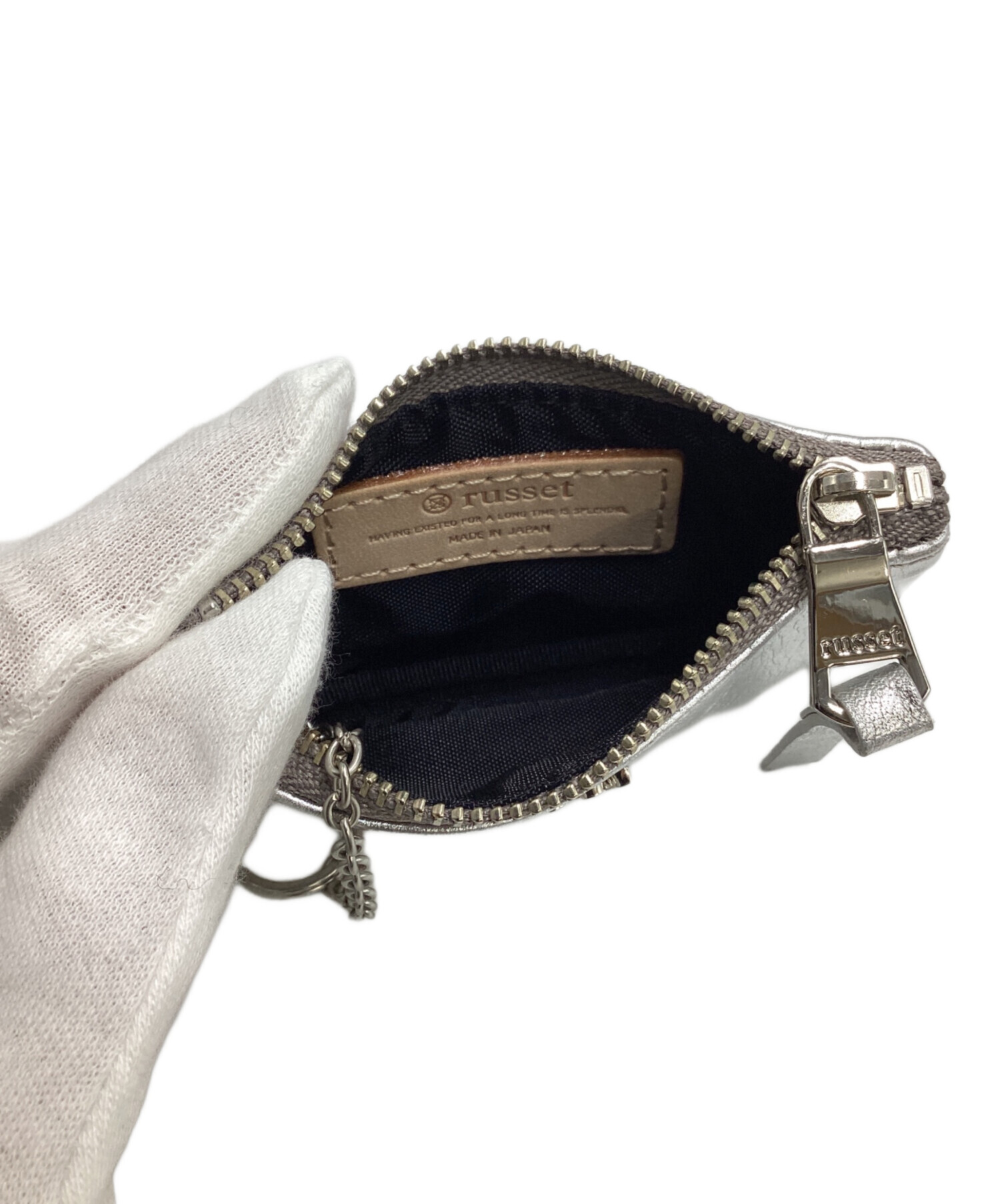 • russet(ラシット)russet (ラシット) カラビナ付きソフトレザーマルチケース シルバーの古着・服飾アイテム カラビナ部分 小キズ有