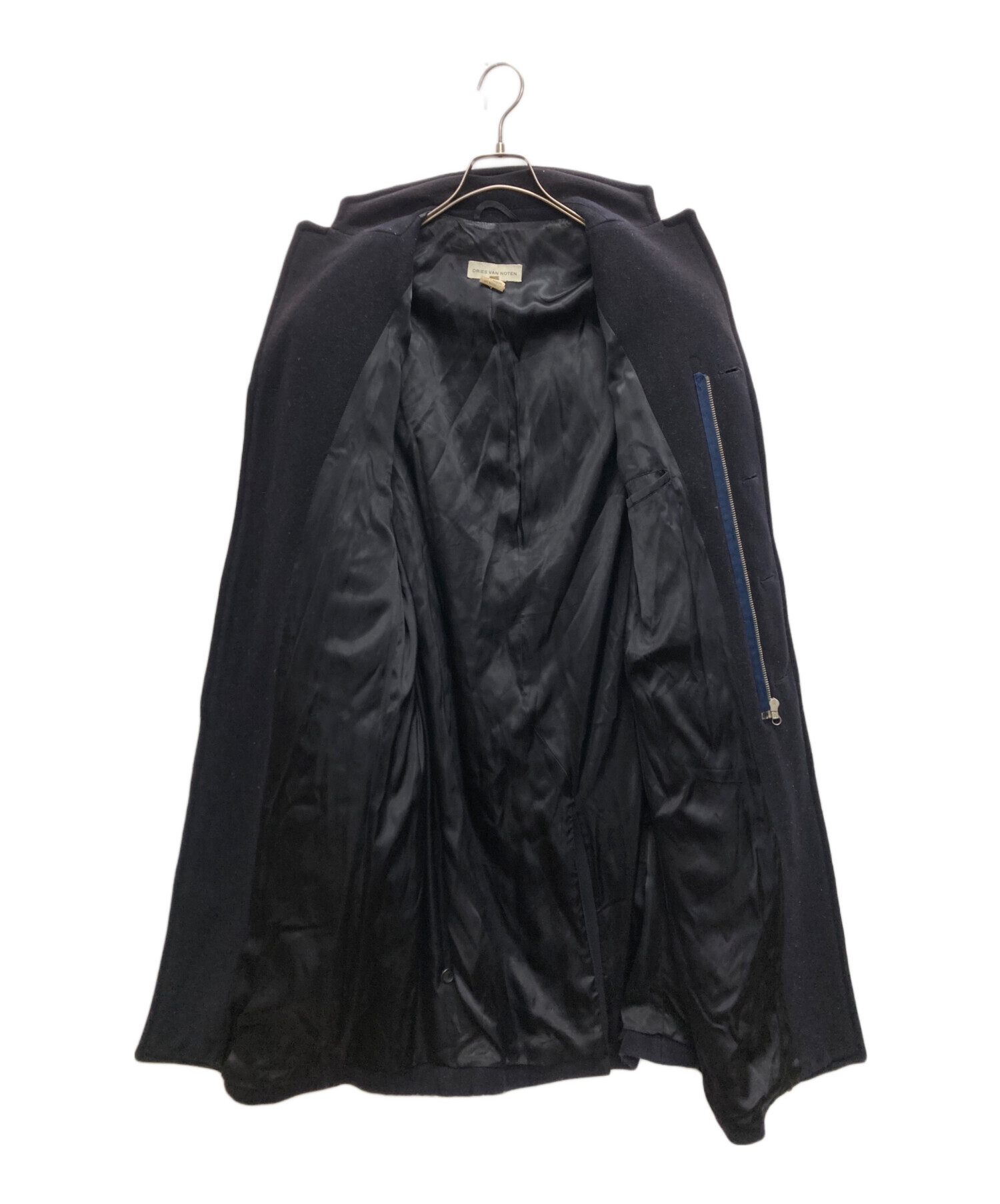 • DRIES VAN NOTEN(ドリスヴァンノッテン)DRIES VAN NOTEN (ドリスヴァンノッテン) ウール×ナイロンロングジップコート ブラック サイズ:SIZE Lの古着・服飾アイテム 各所毛玉