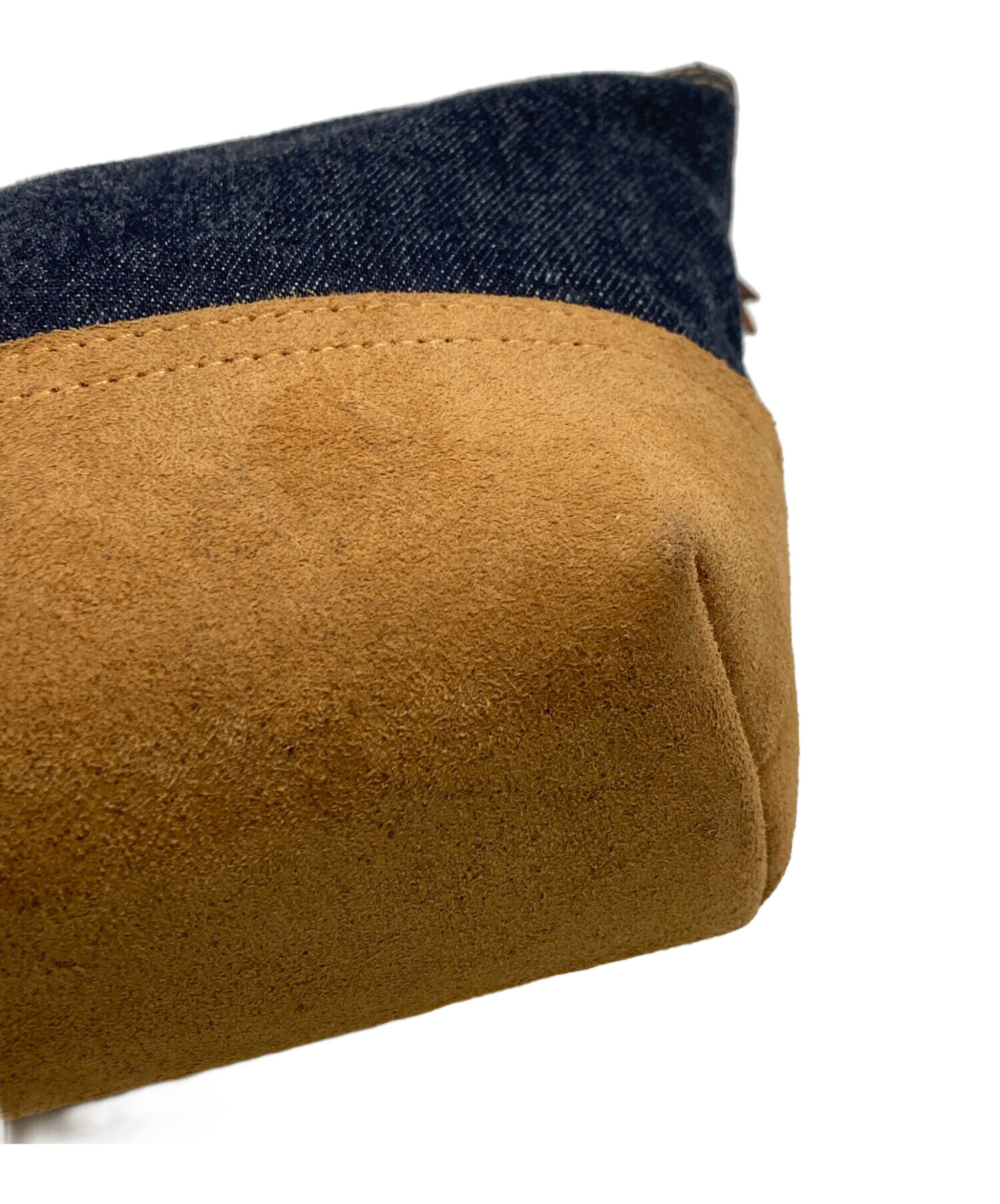 スエードトリム デニム ポーチ