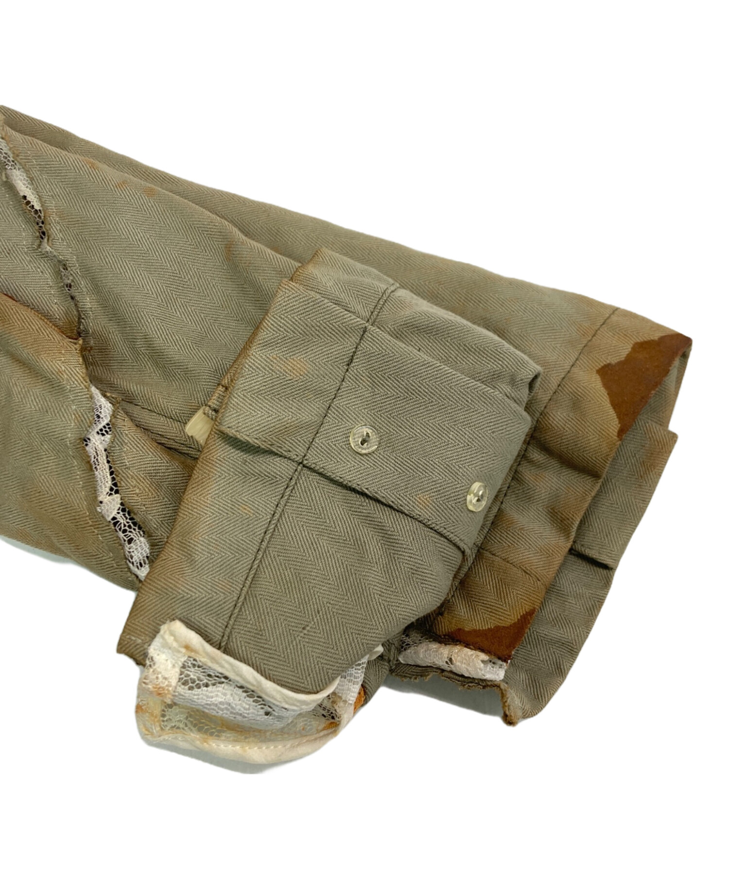 目立つシミや汚れ、におい等がある場合は商品画像や説明文にて極力表記させていただいておりますが、中古品という商品の特性上、全ての瑕疵や不備、洋服直し箇所を撮影・記載をすることは難しくなっております。また、ほとんどのアイテムは店頭と併売しておりますため、出品掲載時からコンディションが変動している場合もございます。あらかじめご了承くださいませ。