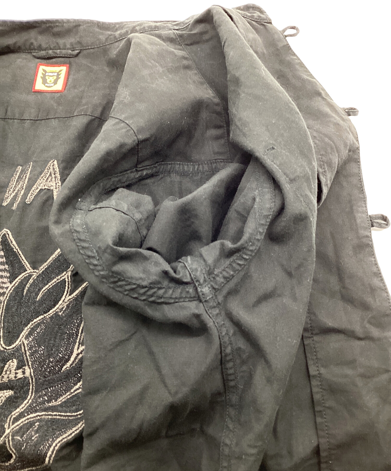 • HUMAN MADE(ヒューマンメイド)HUMAN MADE (ヒューマンメイド) china s/s shirt ブラック サイズ:SIZE Sの古着・服飾アイテム ヨゴレ・アタリ