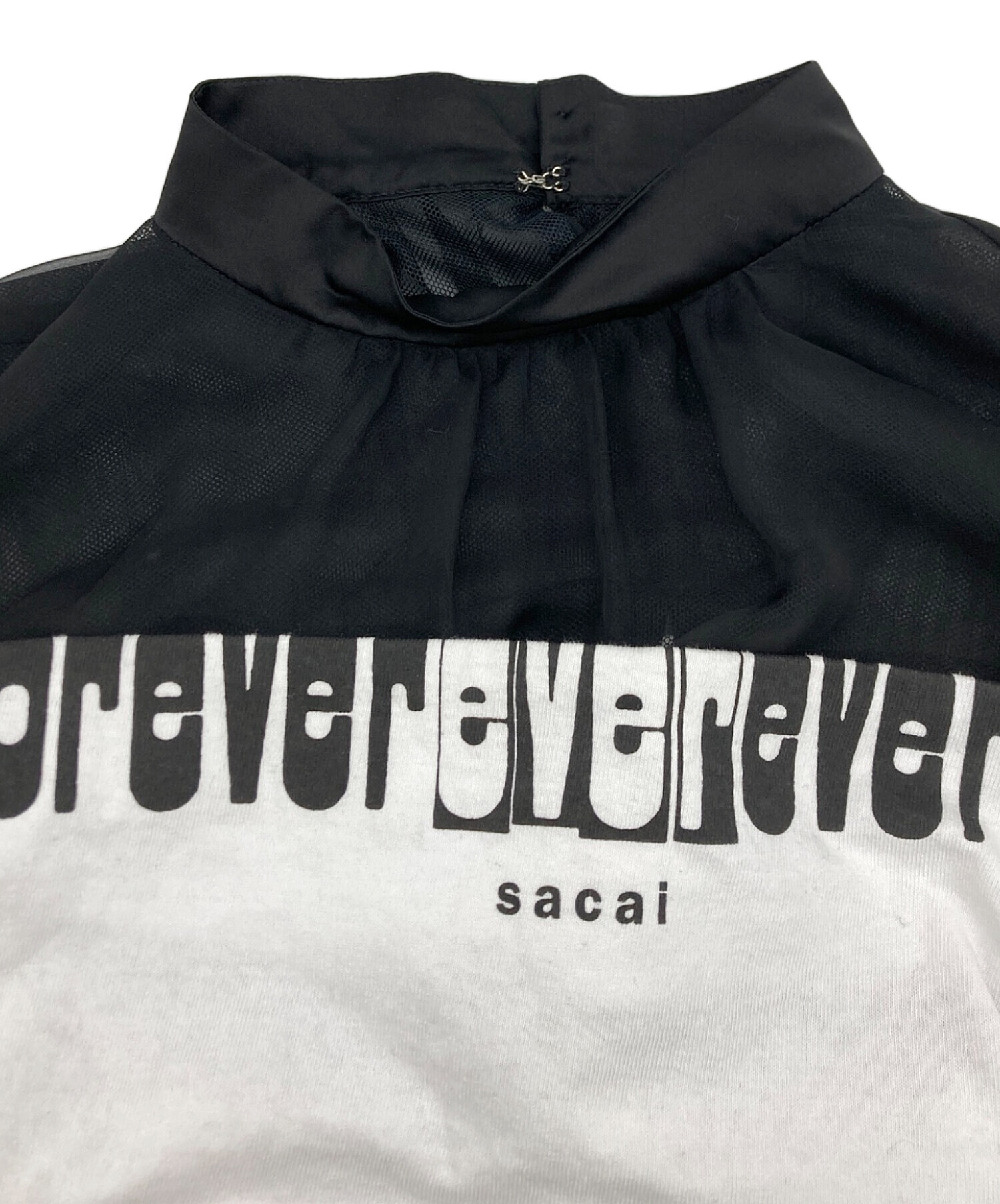 Forever Top フォーエバー シアードッキング シースルー切替 フリルデザイン 半袖 Tシャツ