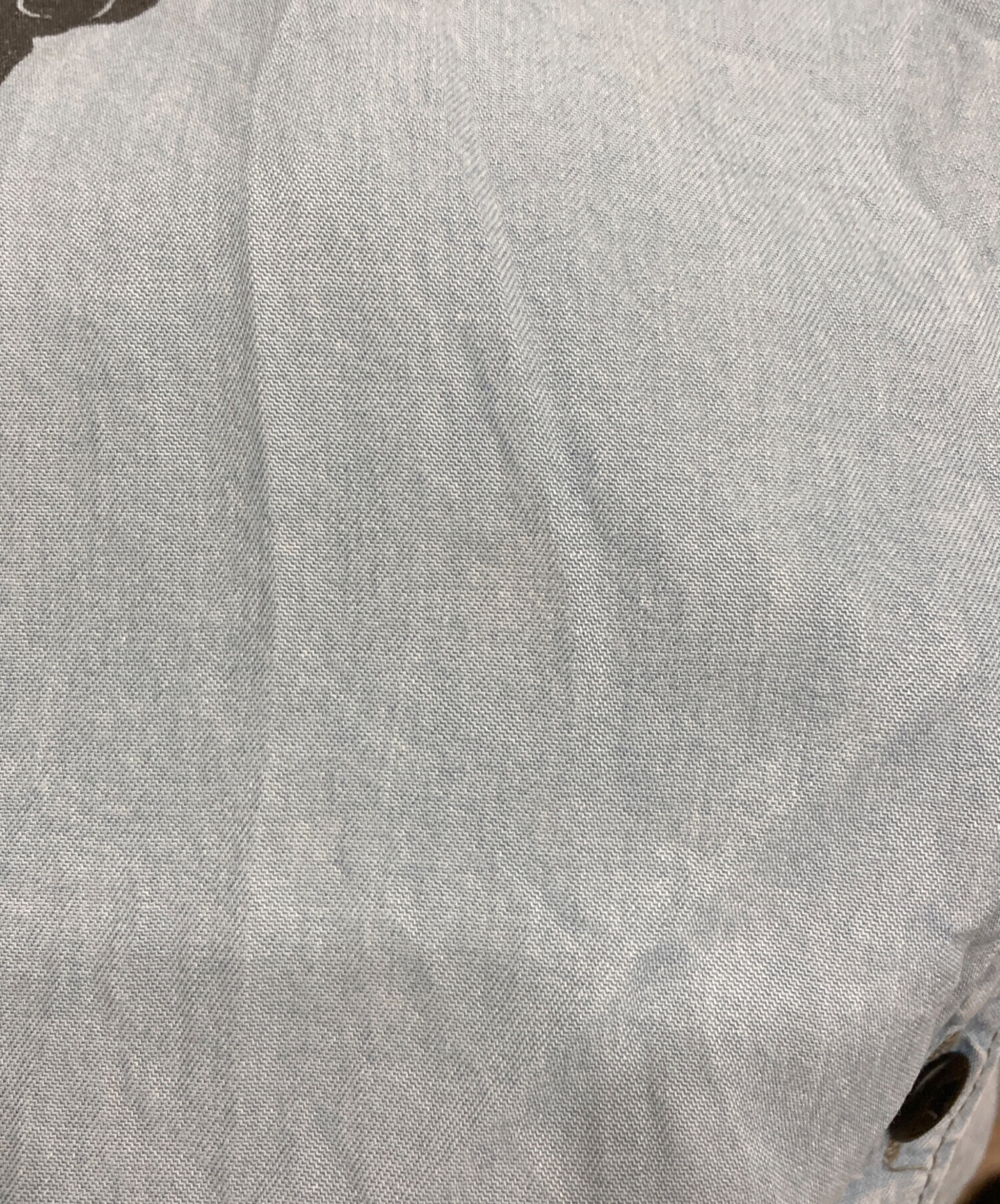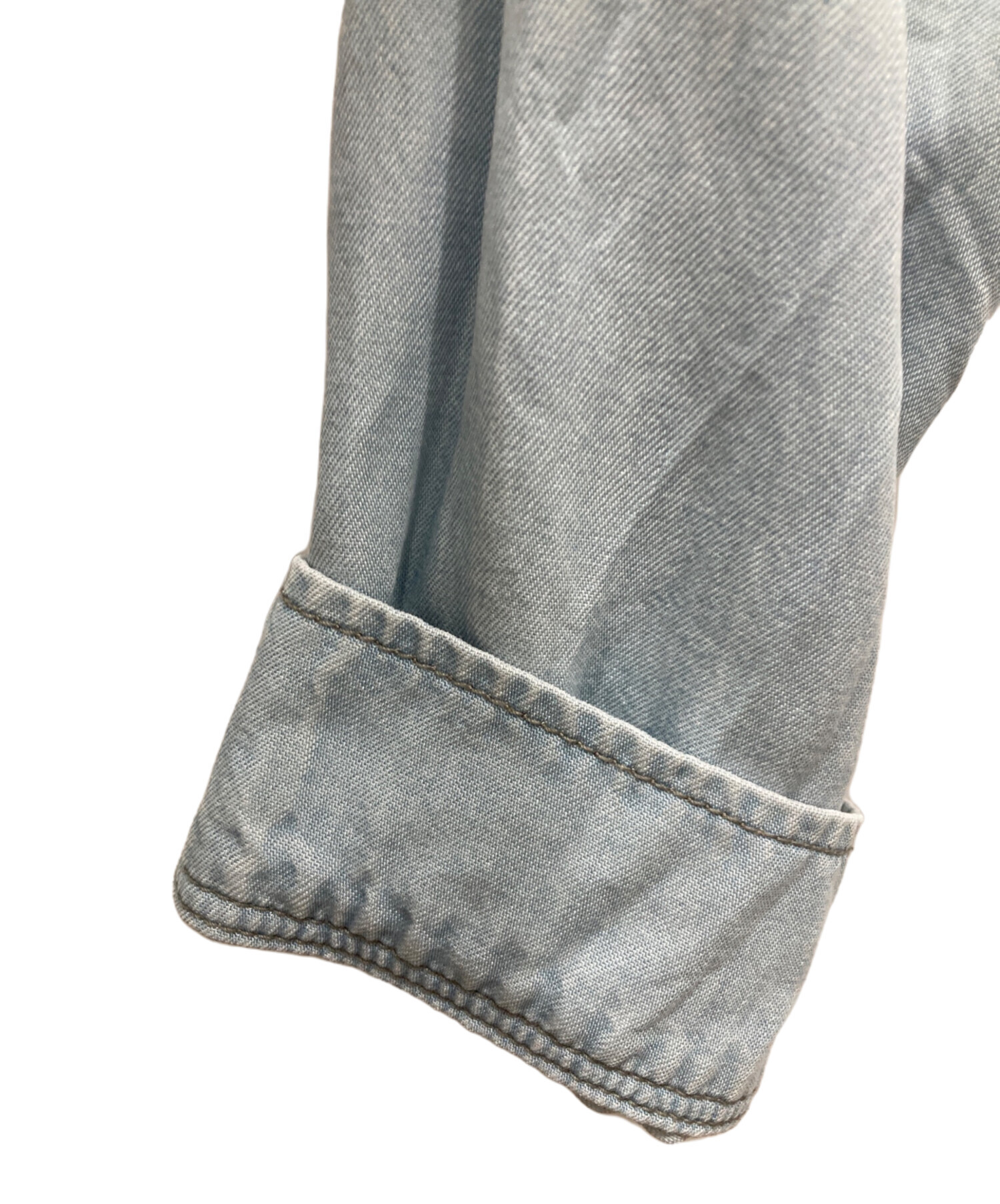 • Andy Warhol by HYSTERIC GLAMOUR(アンディーウォーホルバイヒステリックグラマー)Andy Warhol by HYSTERIC GLAMOUR (アンディーウォーホルバイヒステリックグラマー) 00’sスカルプリントデニムシャツ スカイブルー サイズ:freeの古着・服飾アイテム 前部ヨゴレ