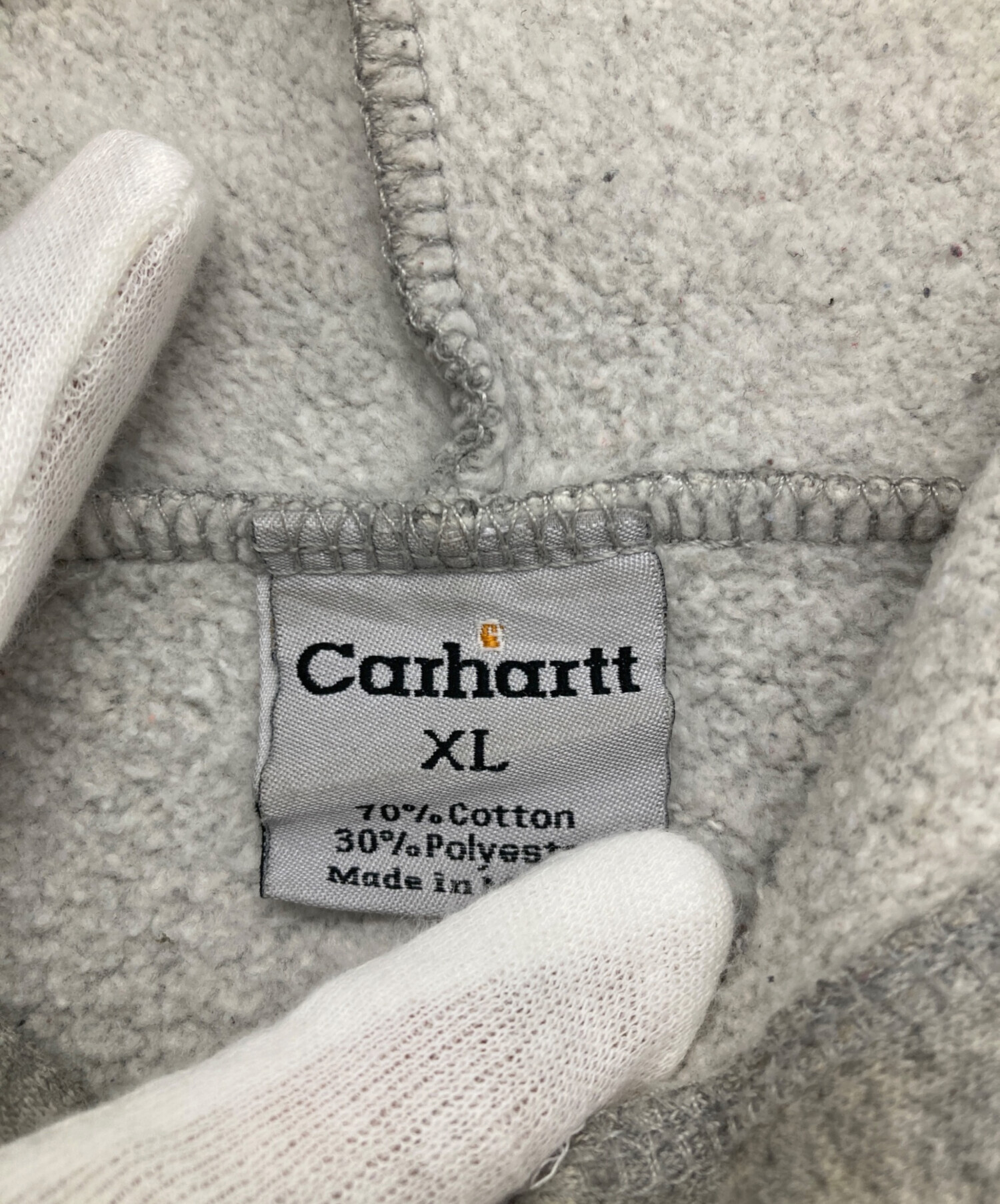 • CarHartt(カーハート)CarHartt (カーハート) プルオーバーパーカー グレー サイズ:XLの古着・服飾アイテム ヨゴレ有
