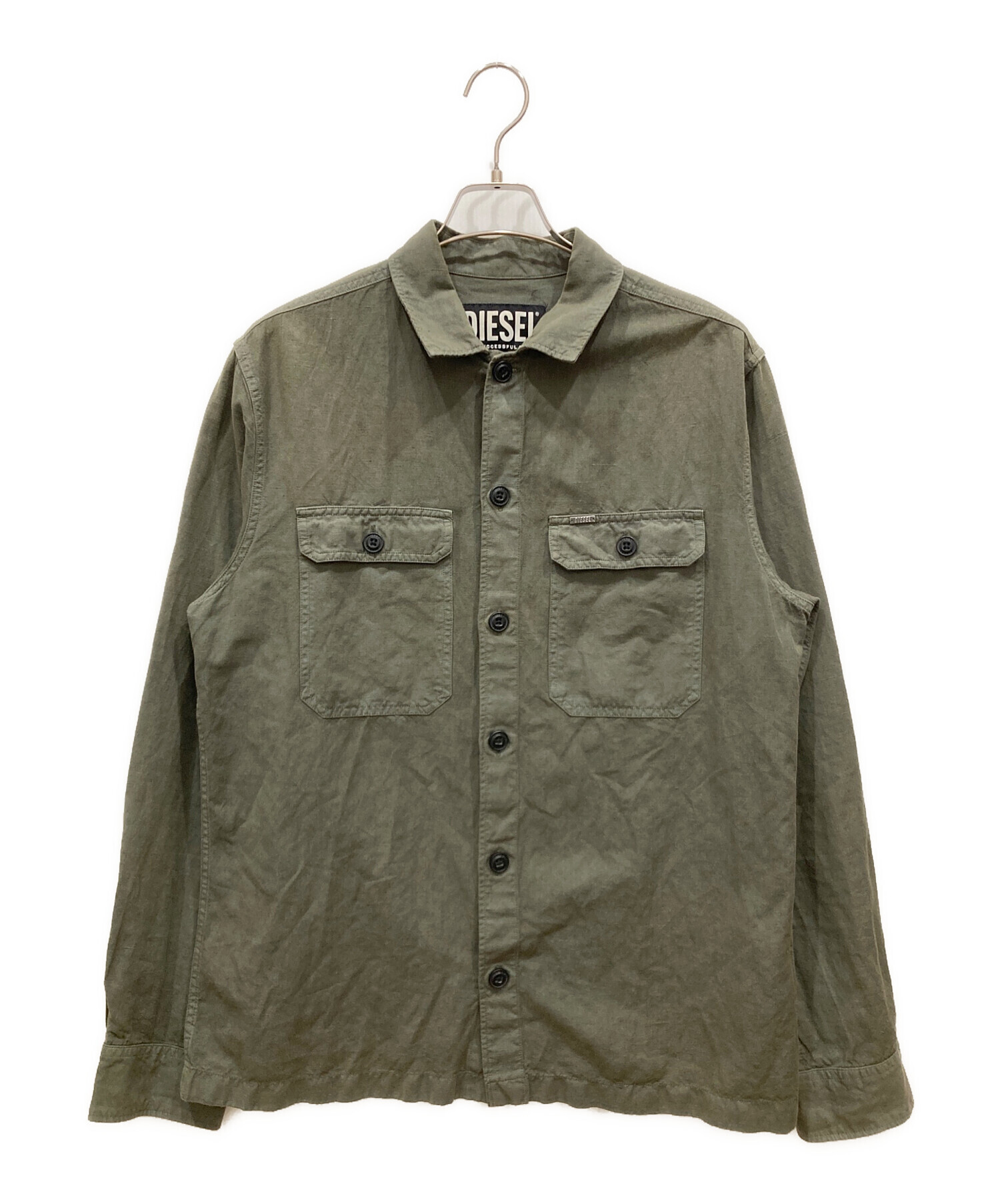 • DIESEL(ディーゼル)DIESEL (ディーゼル) S-HIRT-OUT コットンリネンシャツ グリーン サイズ:SIZE Mの古着・服飾アイテム 袖ヨゴレ