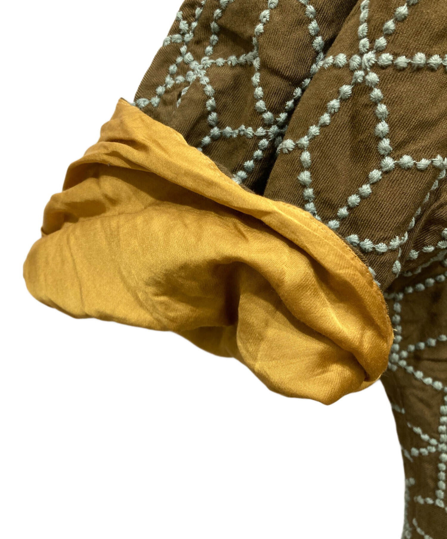 | 素材 | 表生地: 絹 70% 綿 30% 刺繍糸: 綿 100% 裏生地: ポリエステル 52% 綿 48% |