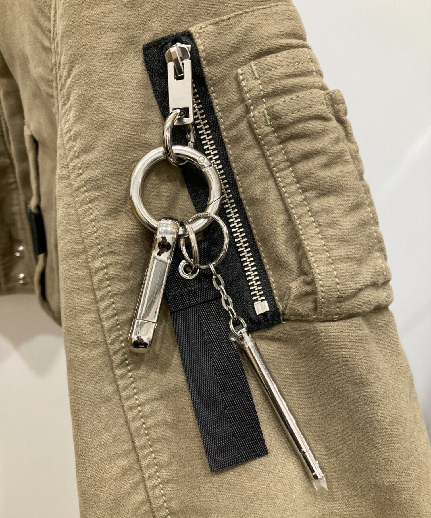 • DIESEL(ディーゼル)DIESEL (ディーゼル) ジッパーデザイン キルティングブルゾン カーキ×ブラック サイズ:SIZE XSの古着・服飾アイテム 袖ヨゴレ