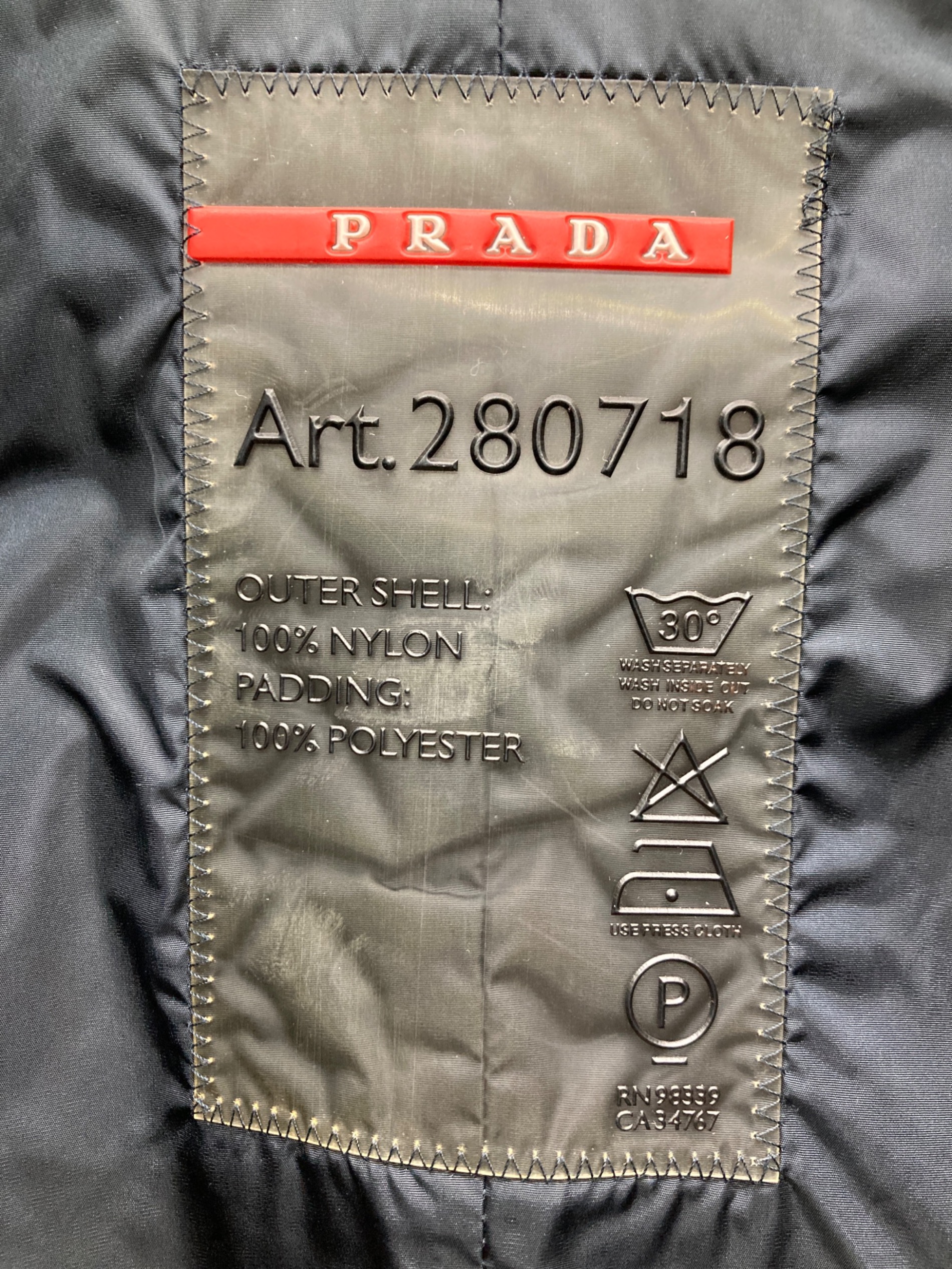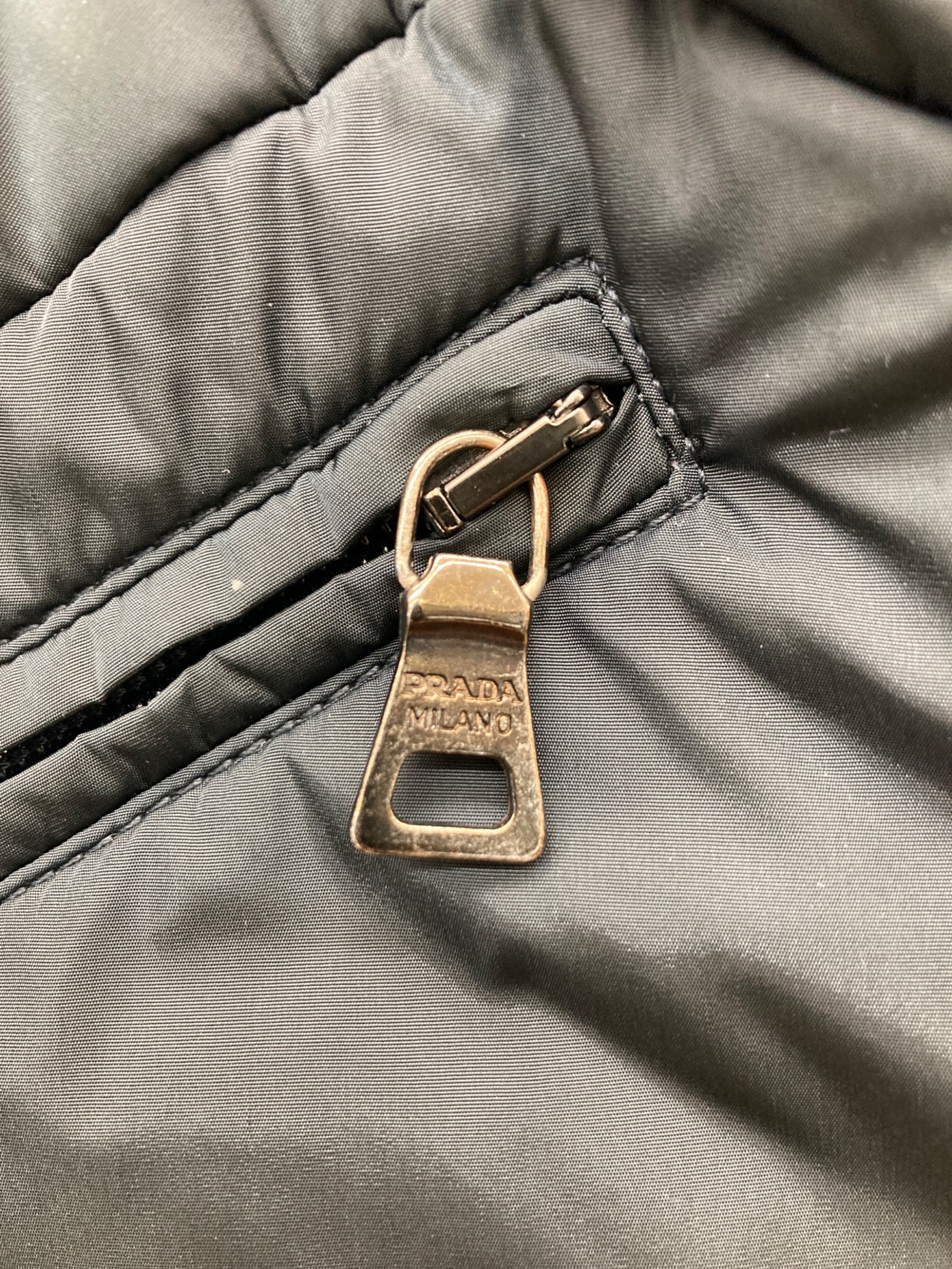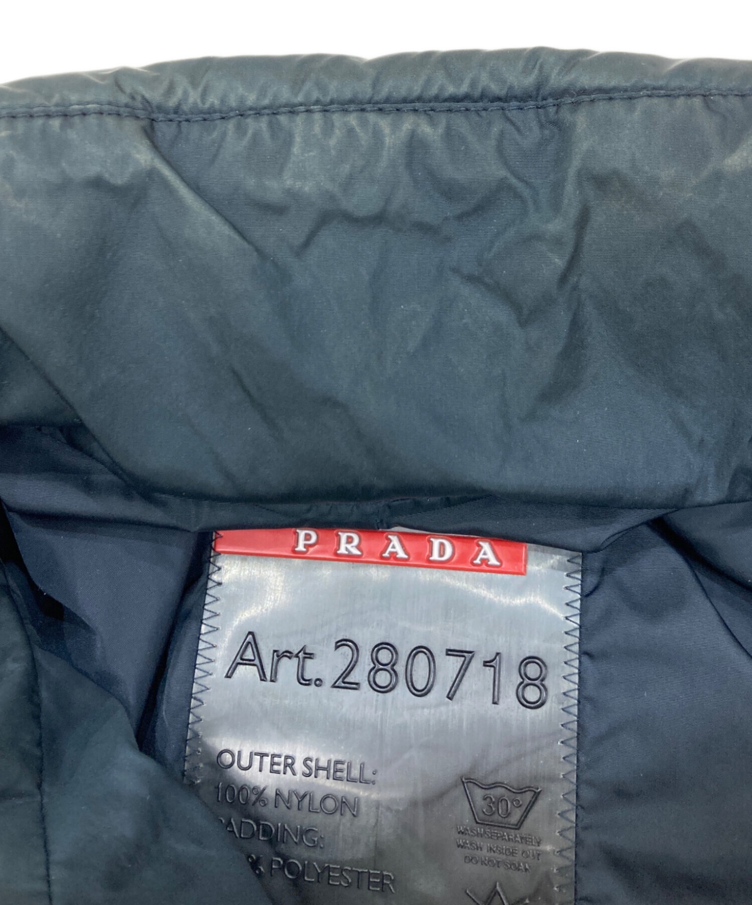• PRADA SPORTS(プラダスポーツ)PRADA SPORTS (プラダスポーツ) ナイロンパデットジャケット ネイビー サイズ:SIZE 38の古着・服飾アイテム 1ミリ穴有