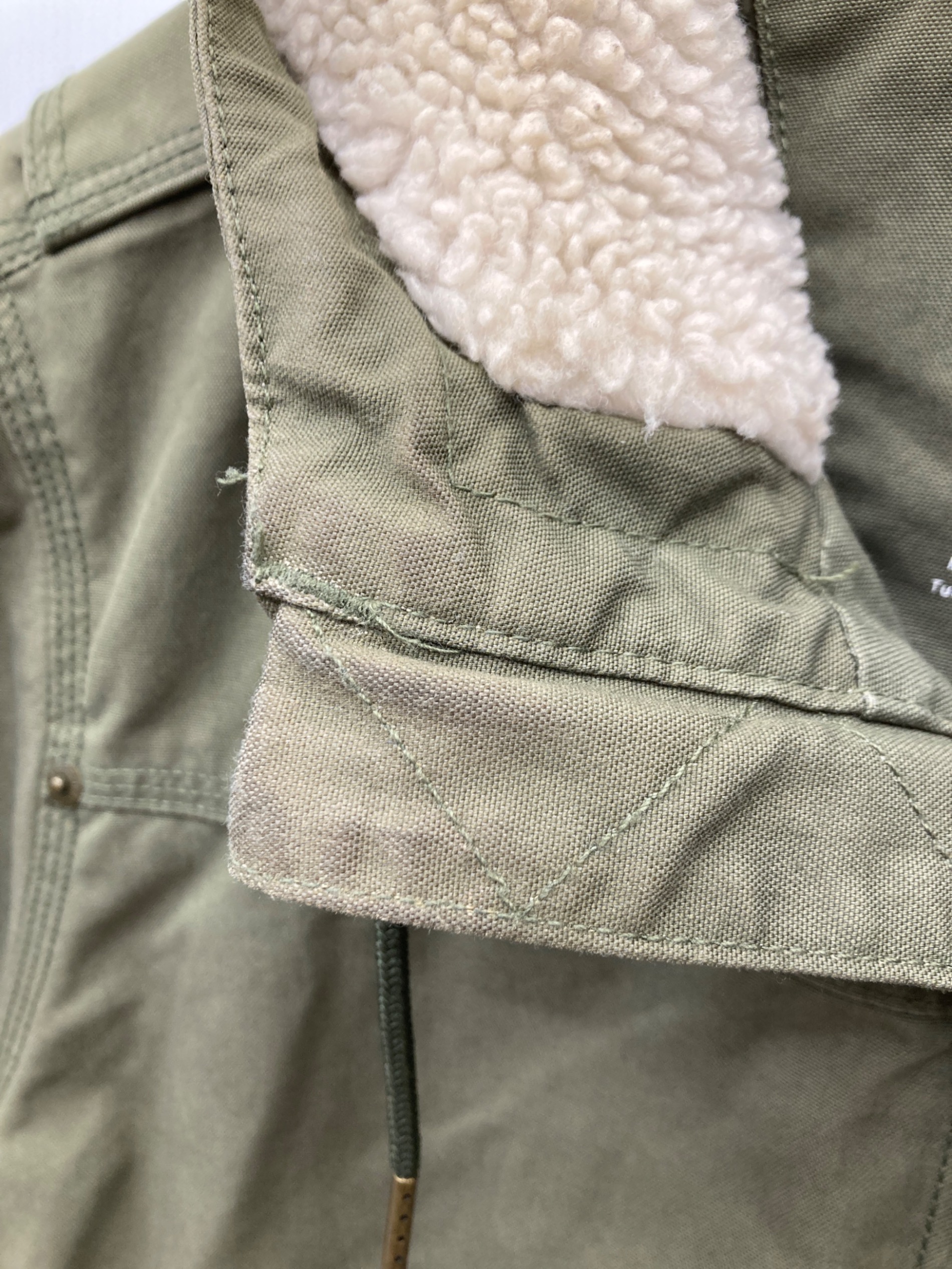 目立つシミや汚れ、におい等がある場合は商品画像や説明文にて極力表記させていただいておりますが、中古品という商品の特性上、全ての瑕疵や不備、洋服直し箇所を撮影・記載をすることは難しくなっております。また、ほとんどのアイテムは店頭と併売しておりますため、出品掲載時からコンディションが変動している場合もございます。あらかじめご了承くださいませ。