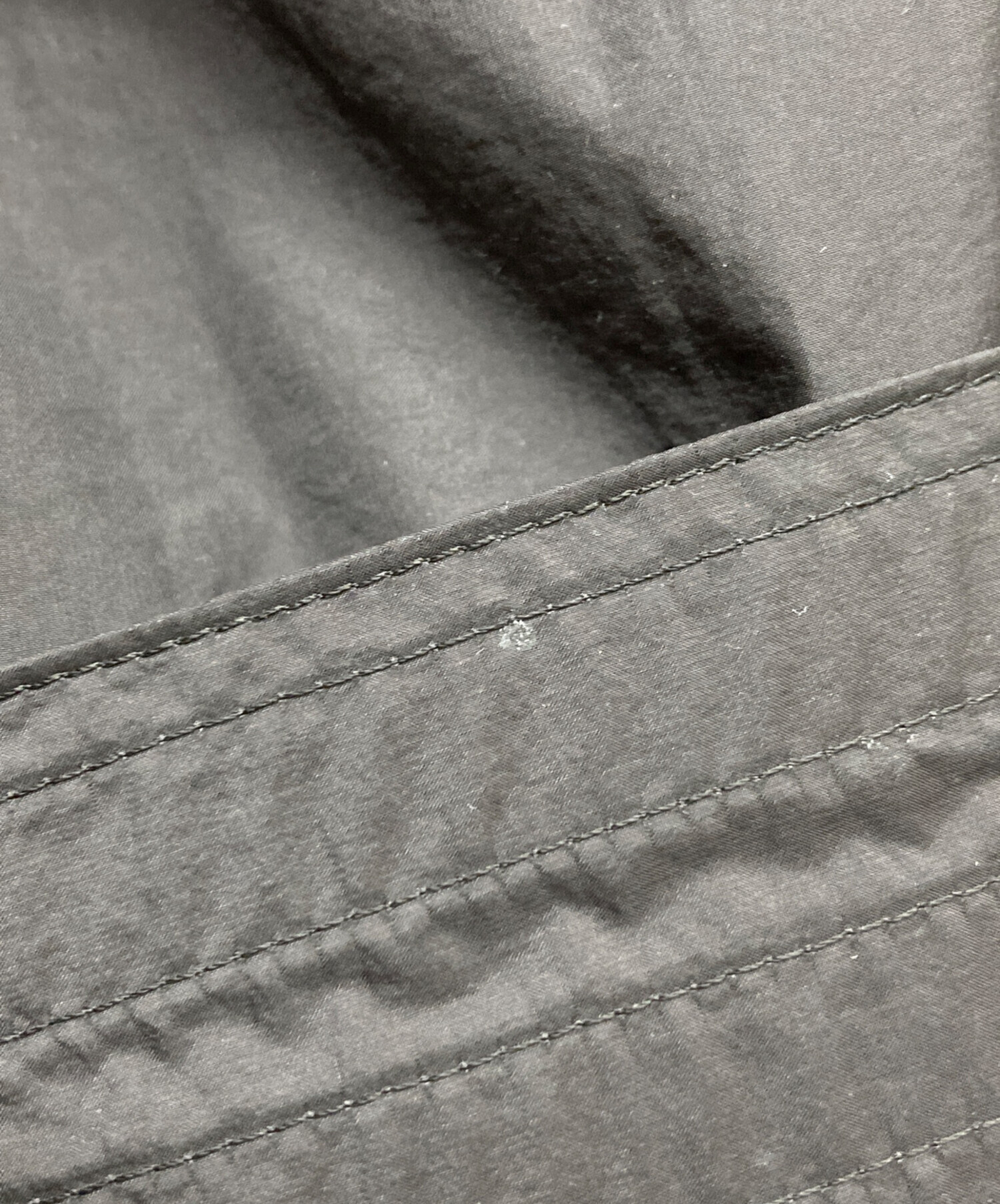 • hatra(ハトラ)hatra (ハトラ) マウンテンパーカー/ナイロンブルゾン チャコール サイズ:SIZE2の古着・服飾アイテム 背面裾付近シミ有