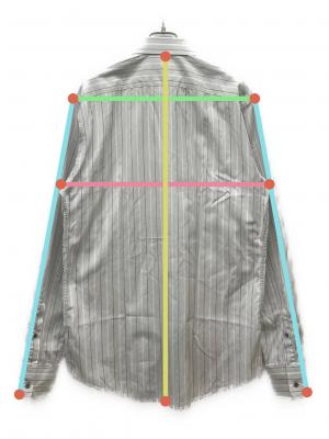 当サイトでは商品の表記サイズの他に、出品商品を採寸しサイズを記載しております。また、実際のアイテム画像を使用した計測とイラストを使用した計測の2パターンがございます。