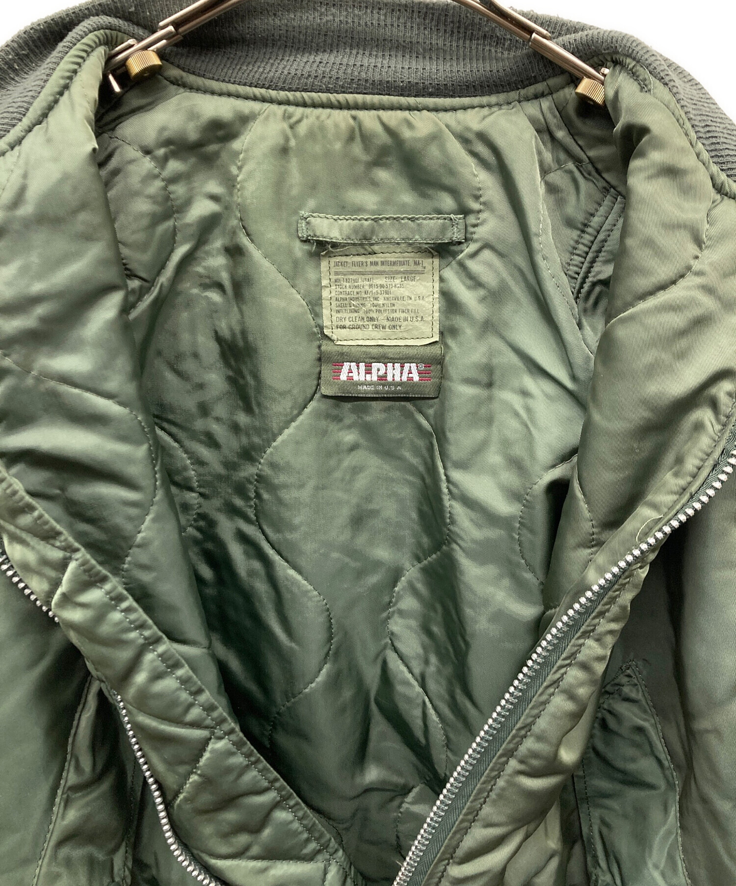 • ALPHA(アルファ)ALPHA (アルファ) 80-90S MA-1ジャケット オリーブ サイズ:Lの古着・服飾アイテム ポケット内部ヨゴレ有