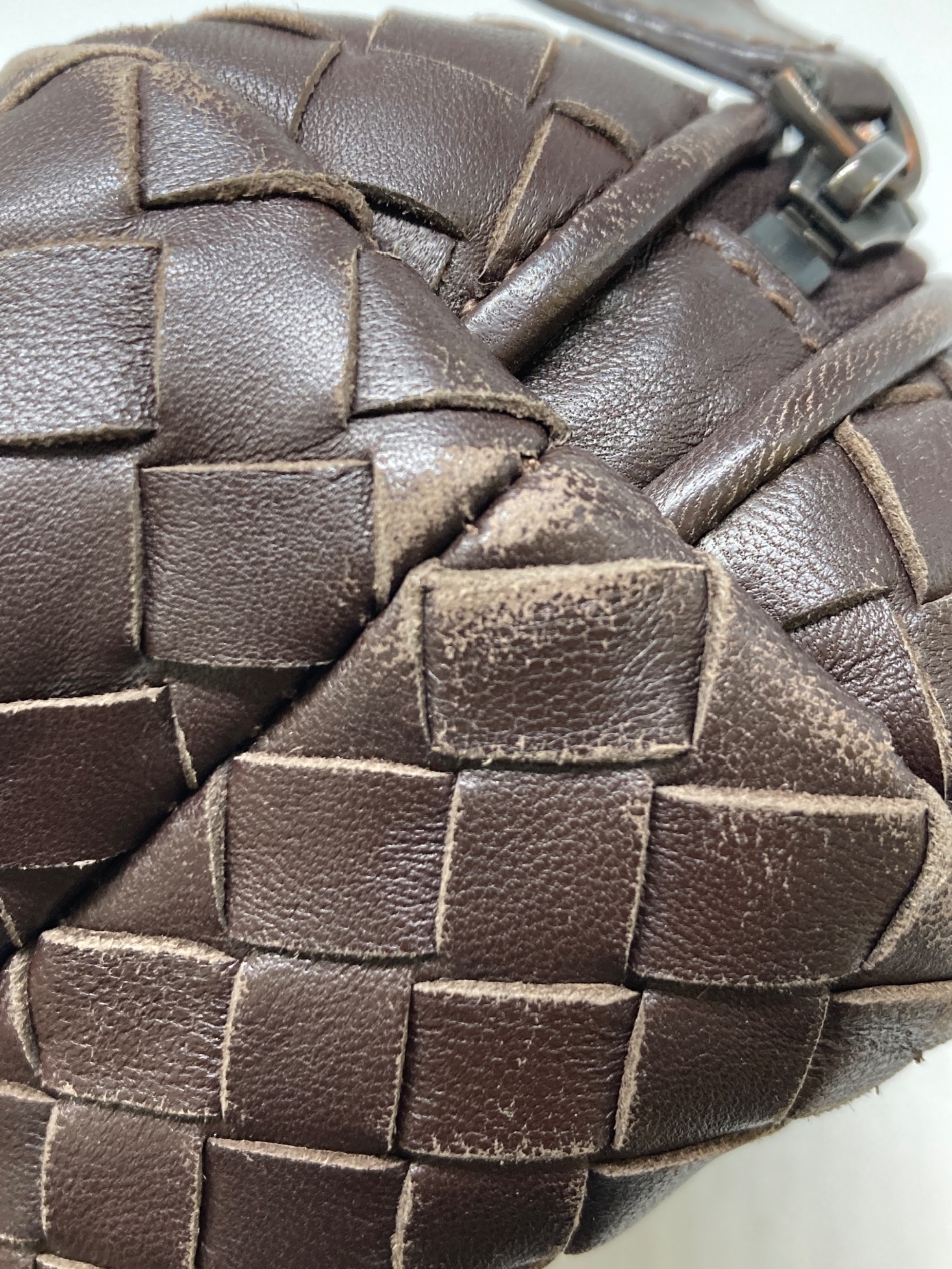 • BOTTEGA VENETA(ボッテガベネタ)BOTTEGA VENETA (ボッテガベネタ) イントレチャートコスメポーチ ブラウン サイズ:-の古着・服飾アイテム スレ、金具くすみ有
