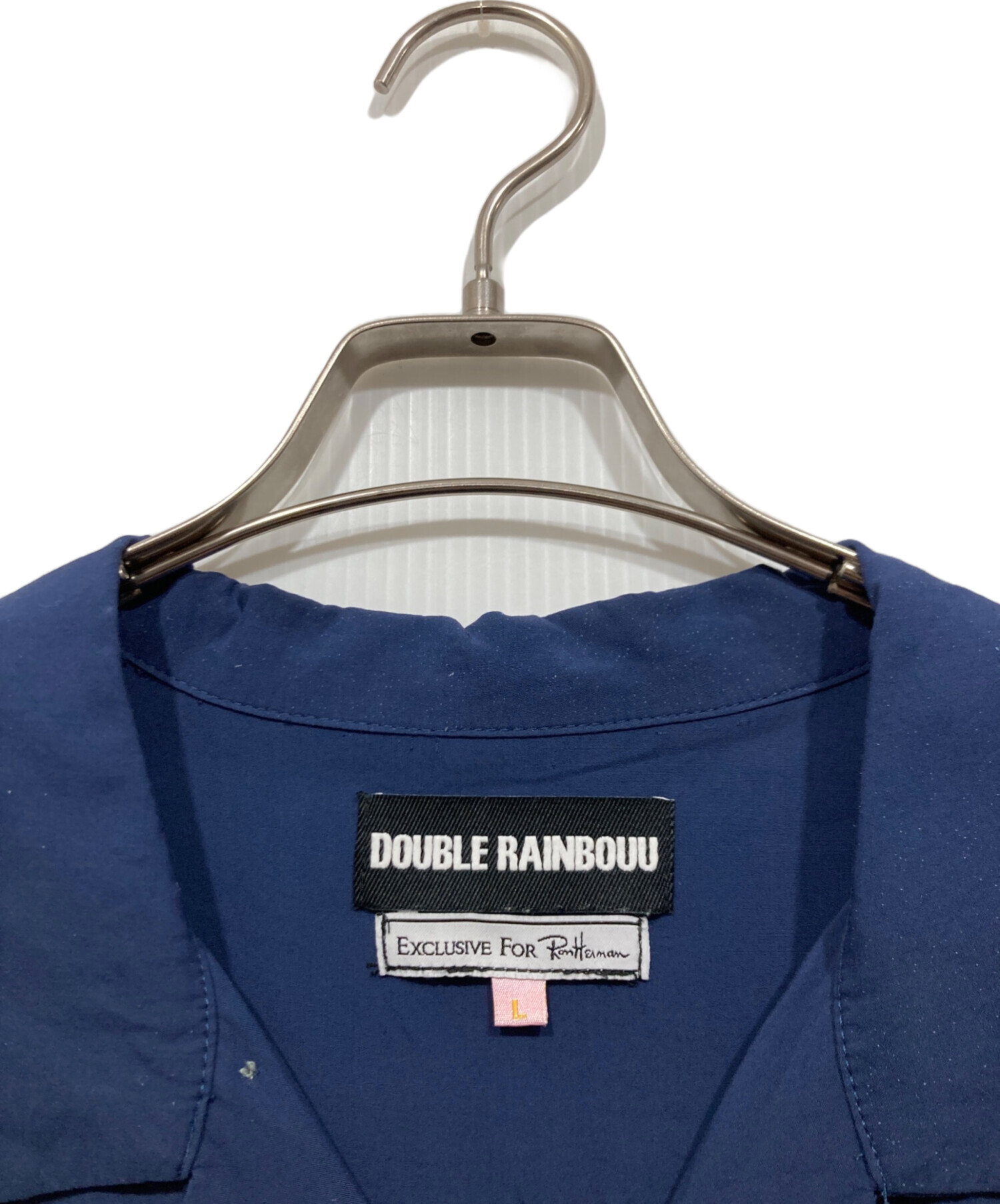 • DOUBLE RAINBOUU(ダブルレインボー)DOUBLE RAINBOUU (ダブルレインボー) Ron Herman (ロンハーマン) オープンカラーシャツ ネイビー サイズ:Lの古着・服飾アイテム ヨゴレ有