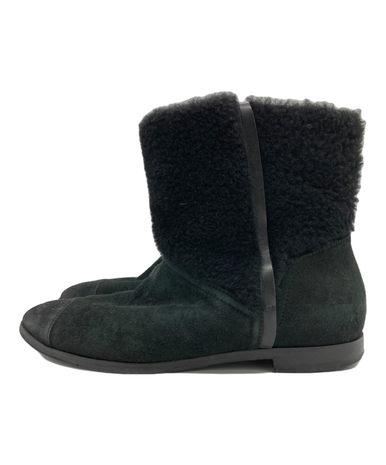 • CHANEL(シャネル)CHANEL (シャネル) ボアショートブーツ ブラック サイズ:36の古着・服飾アイテム ソール減り有
