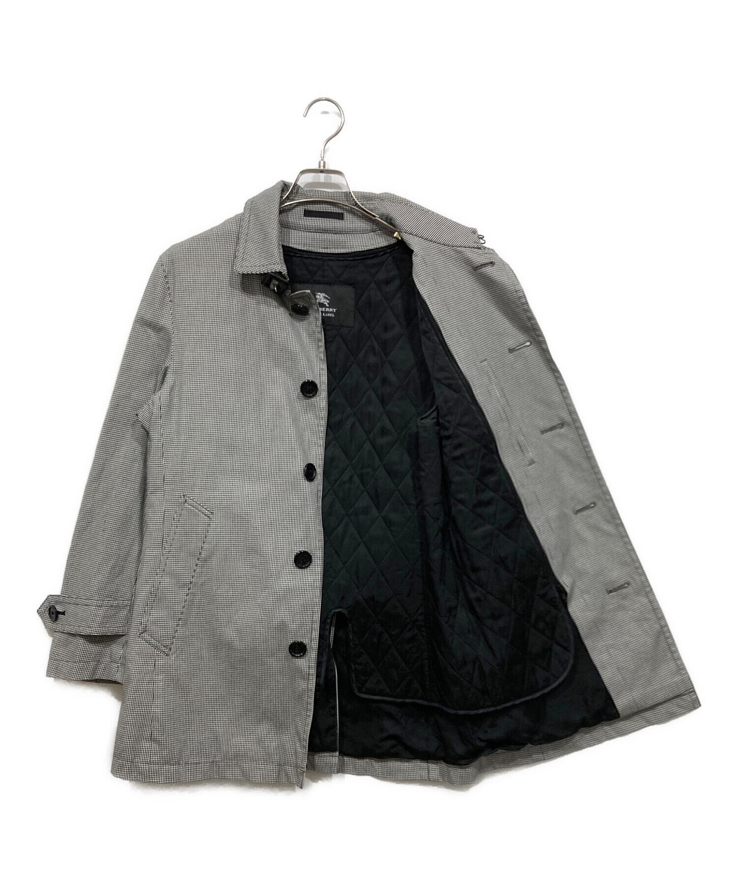 • BURBERRY BLACK LABEL(バーバリーブラックレーベル)BURBERRY BLACK LABEL (バーバリーブラックレーベル) ライナー付き千鳥柄コート グレー サイズ:Sの古着・服飾アイテム 襟ヨゴレ有