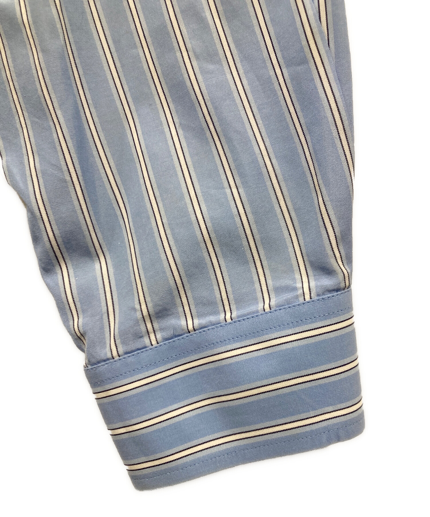 • GUCCI(グッチ)GUCCI (グッチ) 刺繍ストライプシャツ ブルー×ホワイト サイズ:48の古着・服飾アイテム 袖内部ヨゴレ有