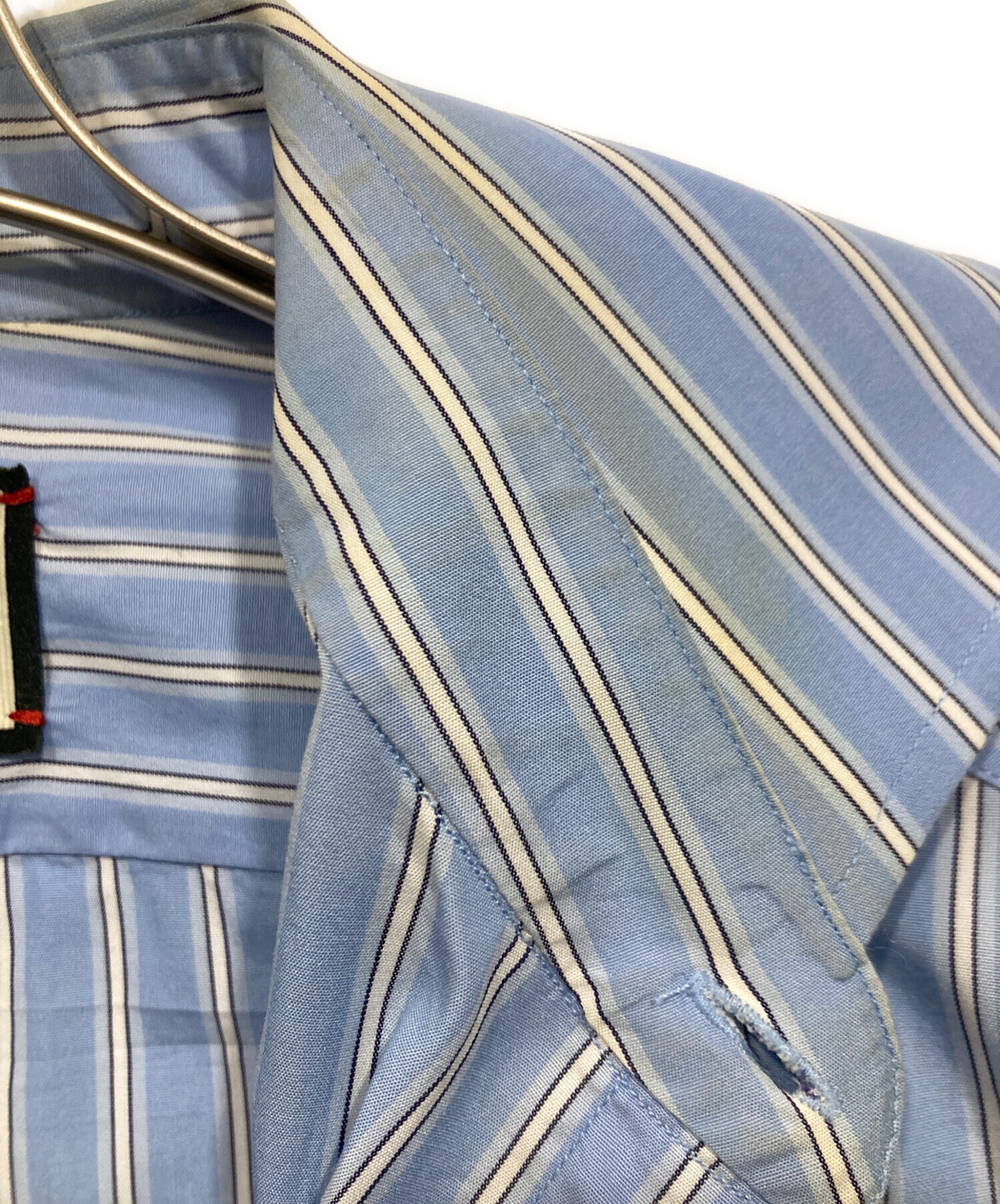 • GUCCI(グッチ)GUCCI (グッチ) 刺繍ストライプシャツ ブルー×ホワイト サイズ:48の古着・服飾アイテム 襟ヨゴレ有