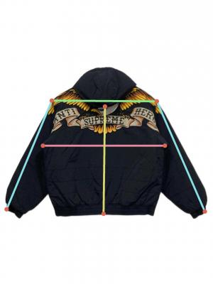 | 素材 | シェル: ナイロン 100% 詰物: ポリエステル 100% 裏地: ポリエステル 100% アップリケ: ナイロン 100% 刺繍: ポリステル 100% |
