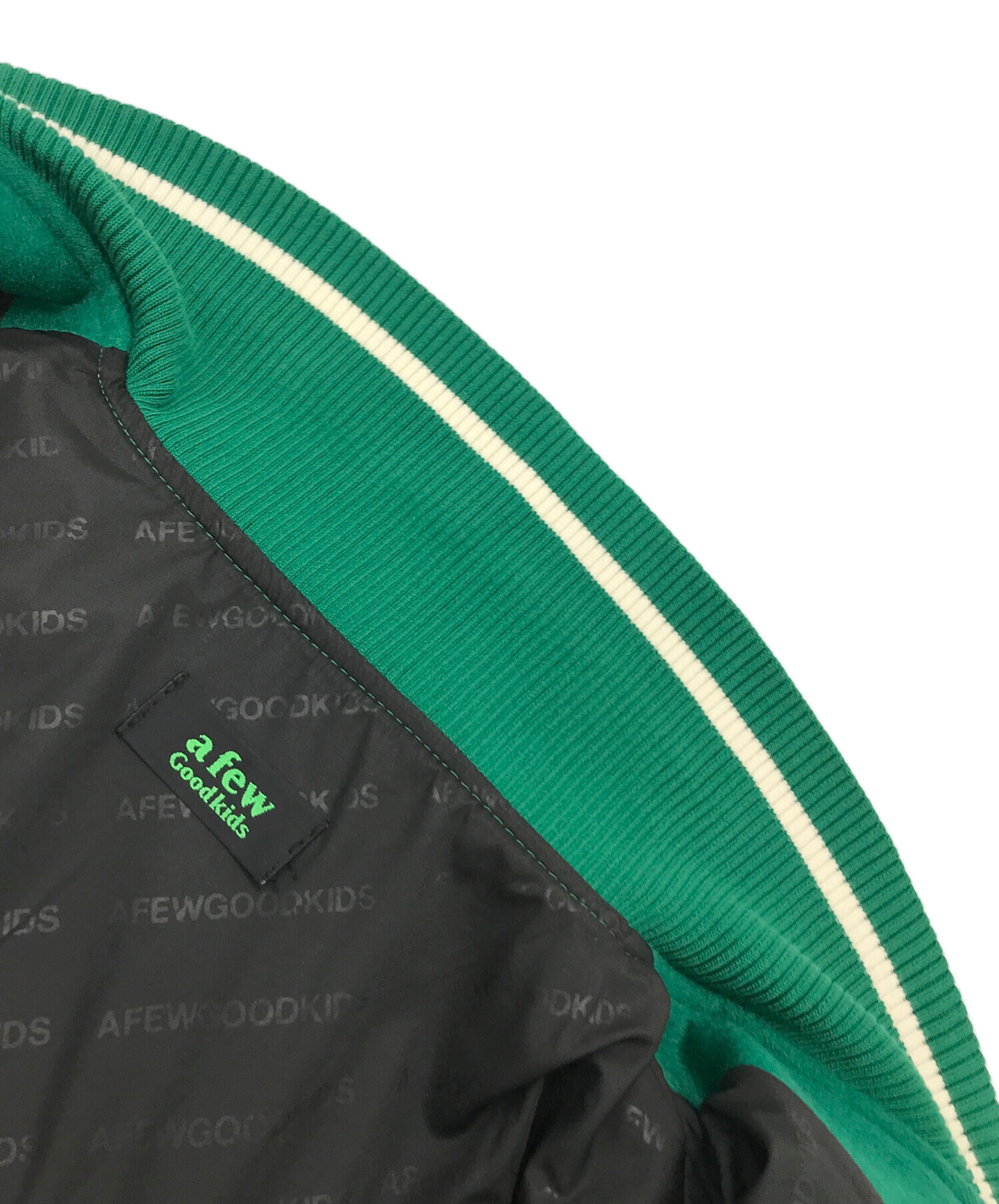 • A FEW GOOD KIDS(アフューグッドキッズ)A FEW GOOD KIDS (アフューグッドキッズ) スタジャン グリーン サイズ:Sの古着・服飾アイテム 袖や袖口スレダメージあり