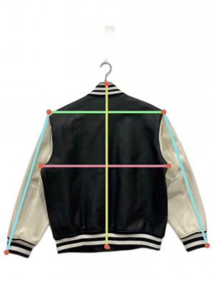 • Schott(ショット)Schott (ショット) FULL LETEHER STADIUM JACKET ブラック×ホワイト サイズ:Lの古着・服飾アイテム スレ、キズがございます。