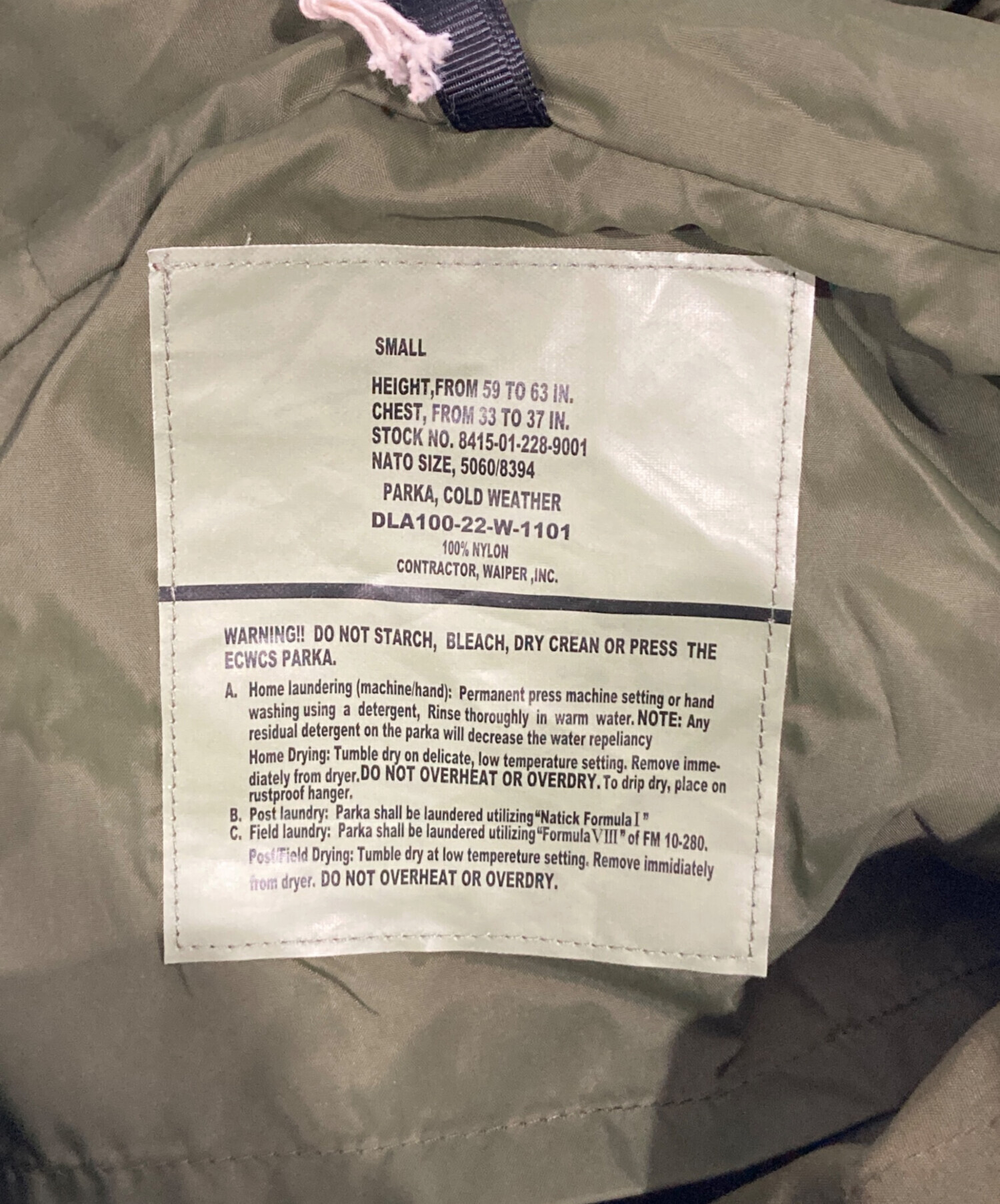 | アイテム名 | ECWCS GEN1 COLD WEATHER PARKA PERTEX UNLIMITED 前期型 |