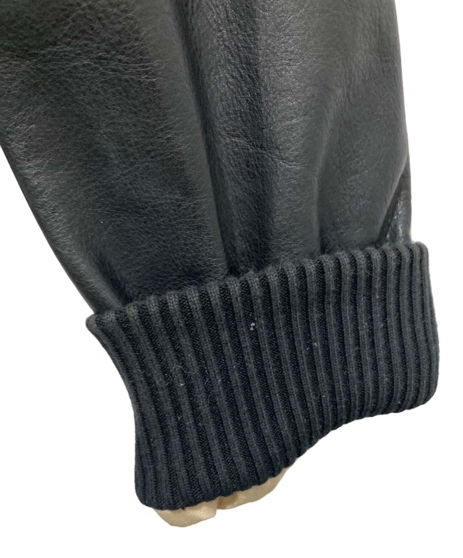 | 素材 | 表地: 牛革 胴裏: コットン 100% 袖浦 ポリエステル 65% コットン 35% リブ部分: コットン 85% ポリエステル 13% ポリウレタン 2% |