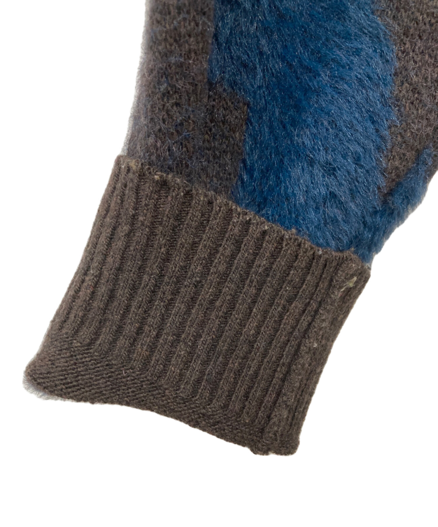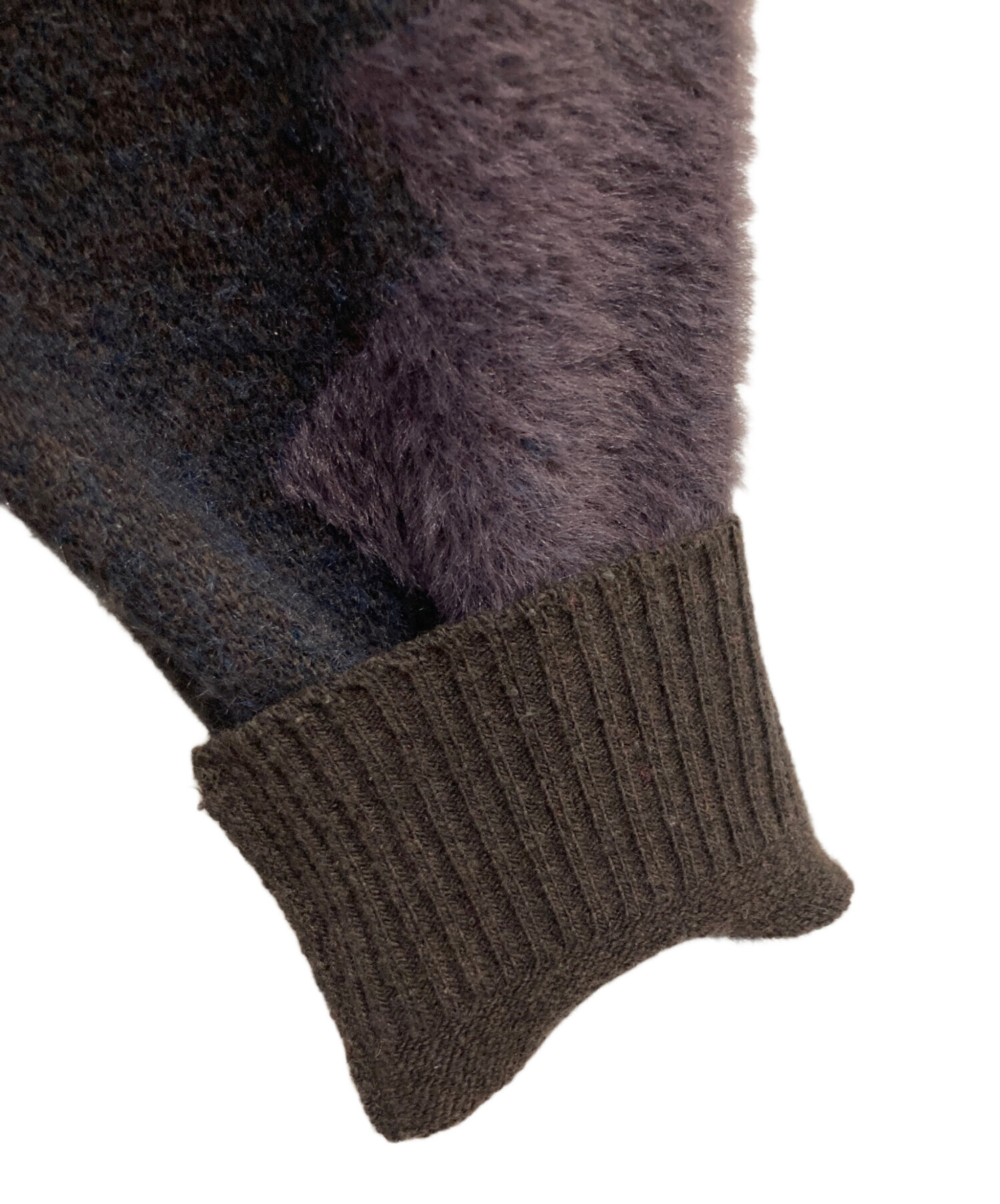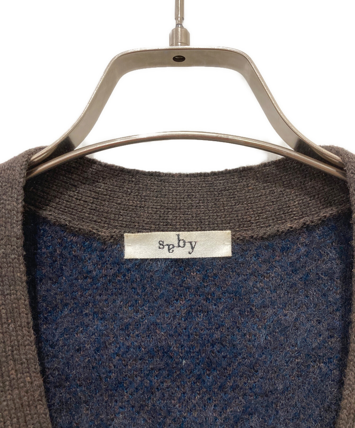 • saby(サバイ)saby (サバイ) WATER SURFACE PATTERN KNIT CARDIGAN ブラウン×ネイビー サイズ:Sの古着・服飾アイテム 毛羽立ち有