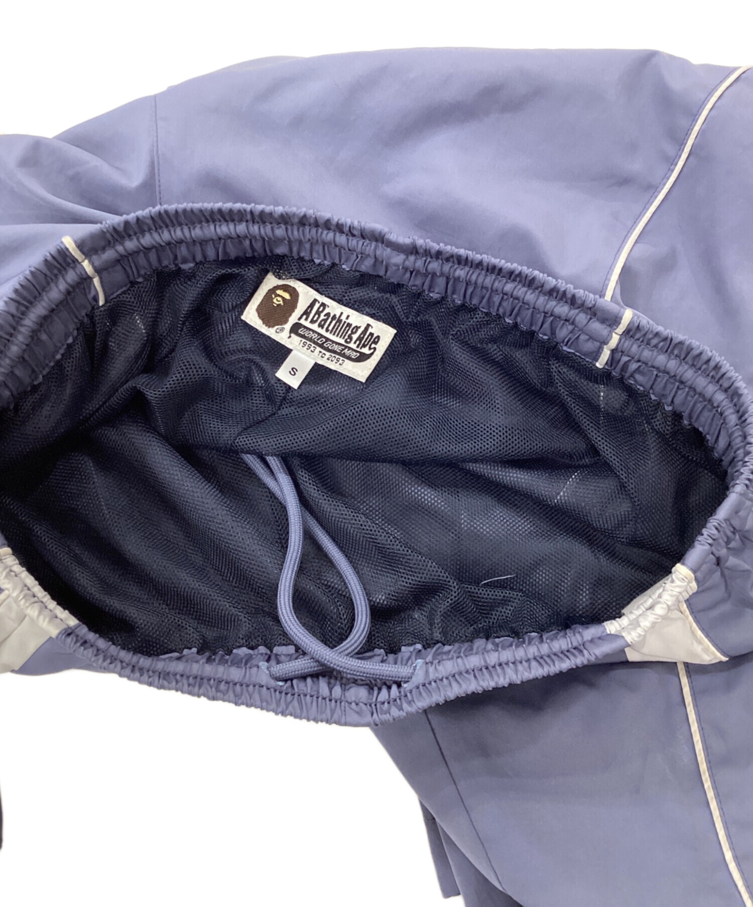 • A BATHING APE(ア ベイシング エイプ)A BATHING APE (ア ベイシング エイプ) LOGO NYLON TRACK PANTS ネイビー サイズ:Sの古着・服飾アイテム シミ有
