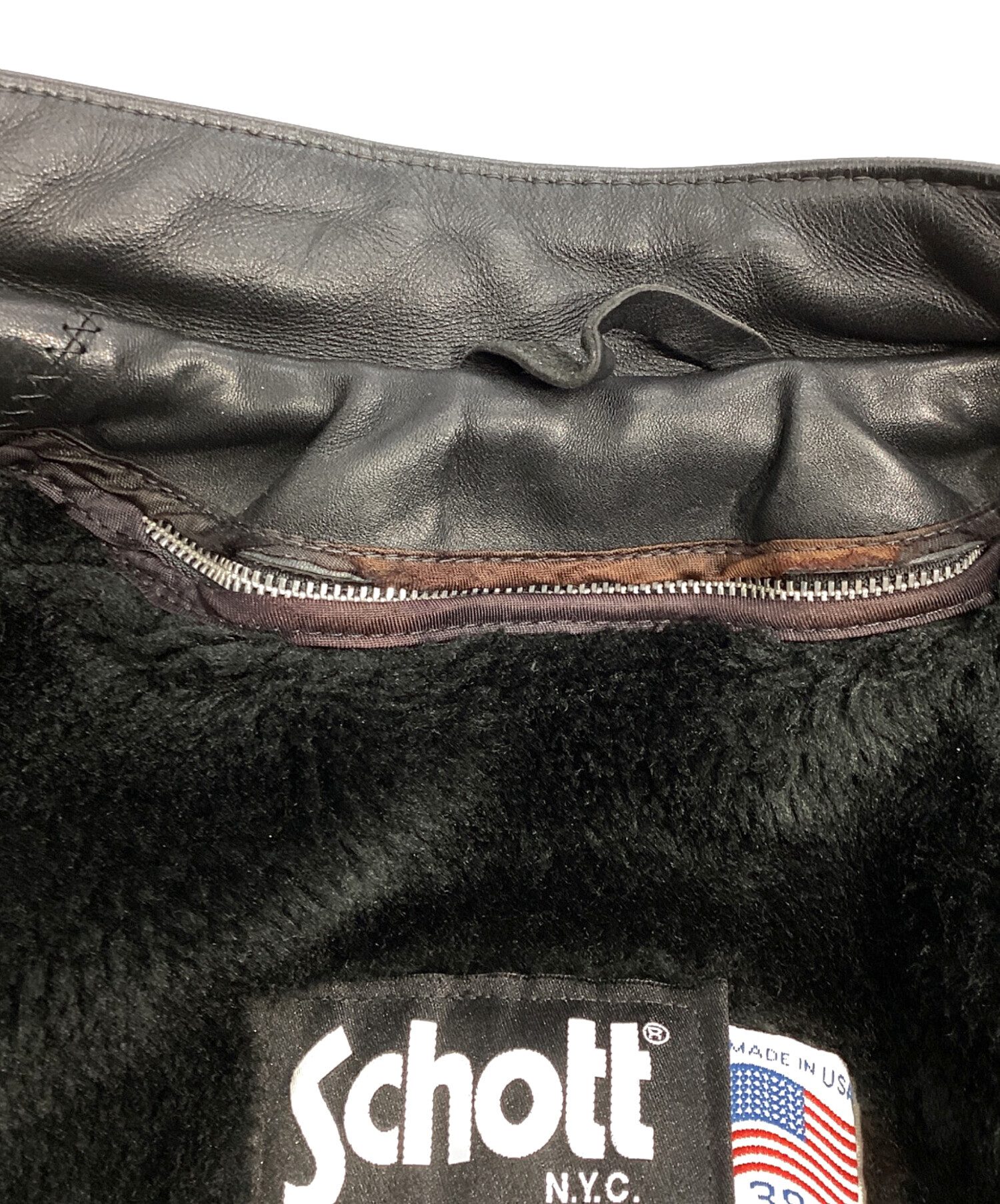 • Schott(ショット)Schott (ショット) ライナー付シングルライダースジャケット 641 ブラック サイズ:38の古着・服飾アイテム ヨゴレ