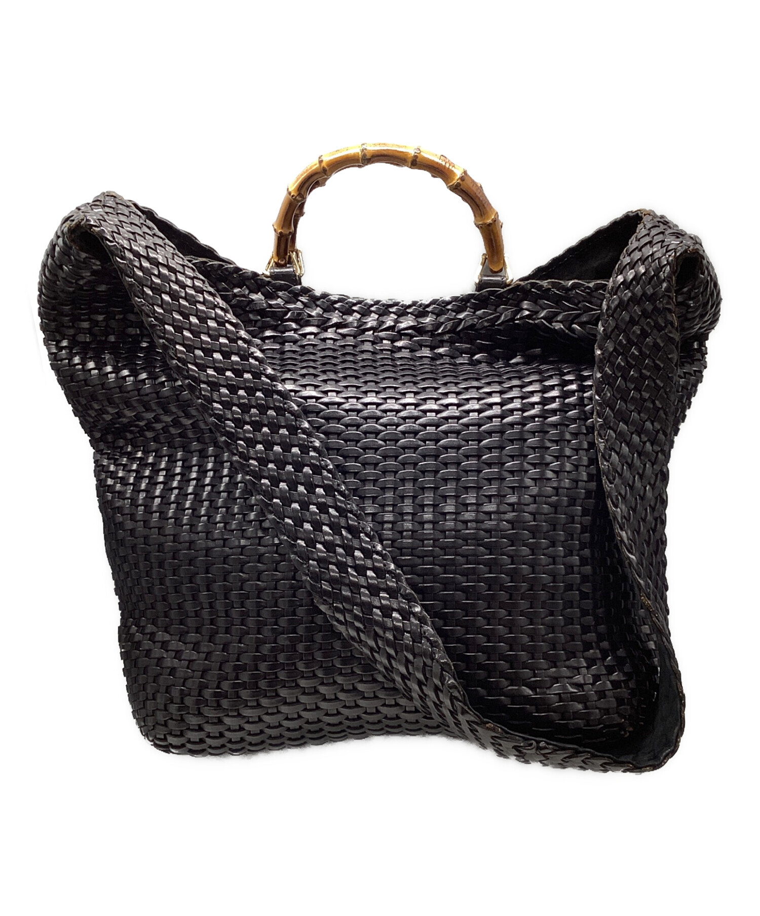バンブーハンドル 編み込みショルダーバッグ