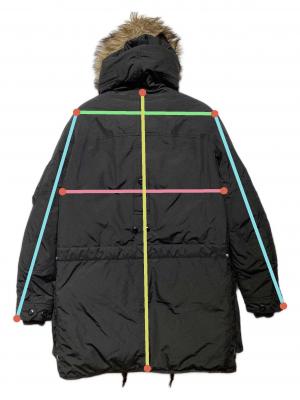 | 素材 | 表地:ポリエステル 100% 裏地:アクリル 43% :モダクリル 43% :ポリエステル 14% 詰物:ダウン 75% :フェザー 25% フード部分:ウール 68% :ポリエステル 31% :スパンデックス 1% |