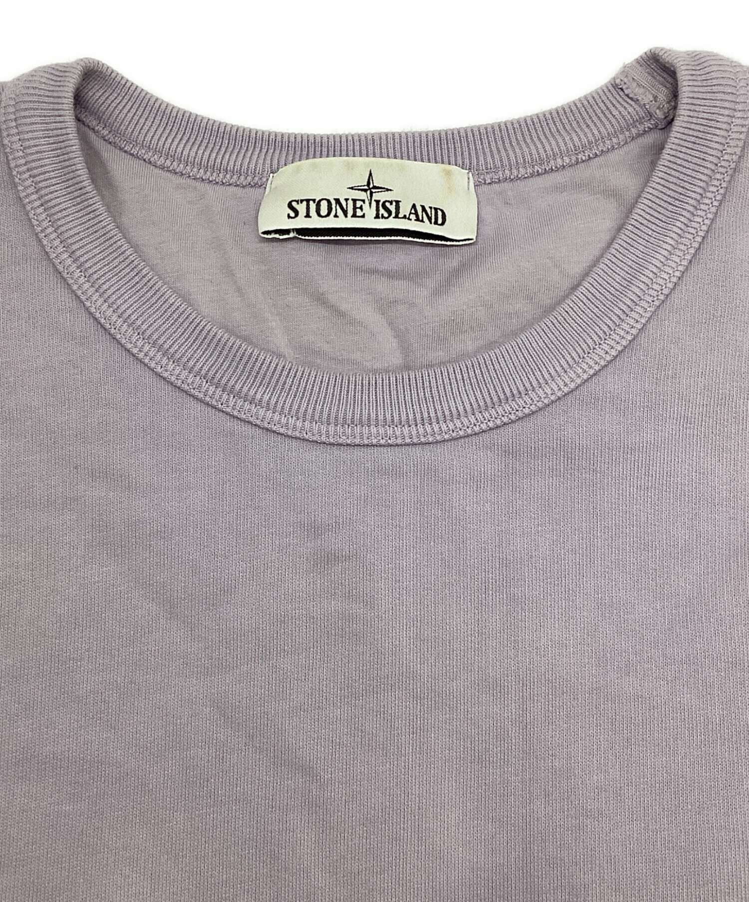 • STONE ISLAND(ストーンアイランド)STONE ISLAND (ストーンアイランド) ログクルーネックスウェット パープル サイズ:Lの古着・服飾アイテム 右肩ヨゴレ