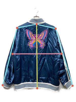 | 素材 | 表地:アセテート 100% 裏地:キュプラ 100% リブ:綿 50% ポリエステル 50% ワッペン 本体 綿 100% 刺繍 レーヨン 100% |