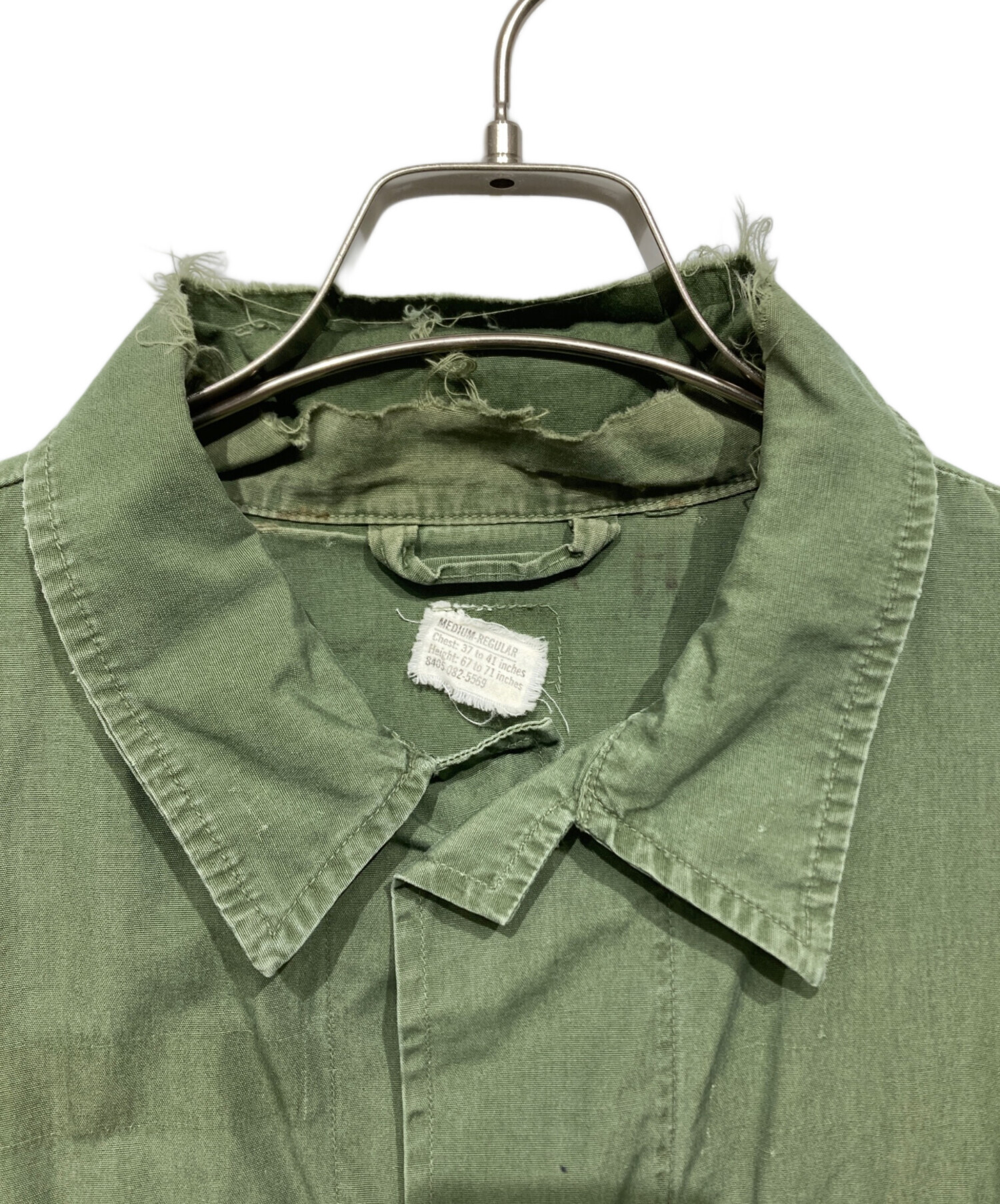 • US ARMY(ユーエスアーミー)US ARMY (ユーエスアーミー) ジャングルファティーグジャケット グリーン サイズ:MEDIUMの古着・服飾アイテム 襟ヤブレ、タグ剥がれ