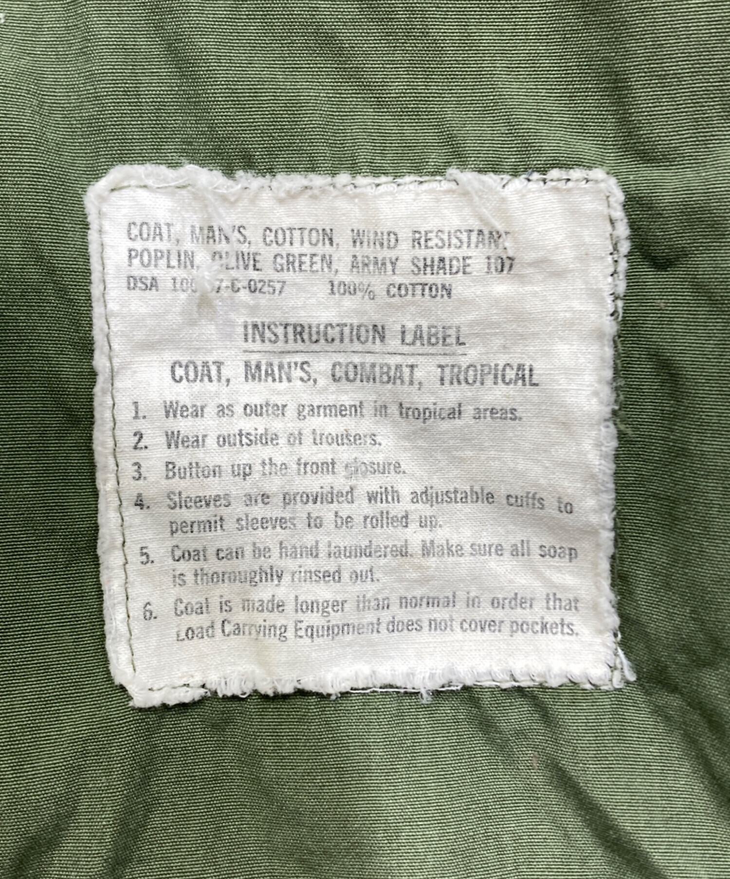• US ARMY(ユーエスアーミー)US ARMY (ユーエスアーミー) ジャングルファティーグジャケット グリーン サイズ:MEDIUMの古着・服飾アイテム ヨゴレ、ペン跡