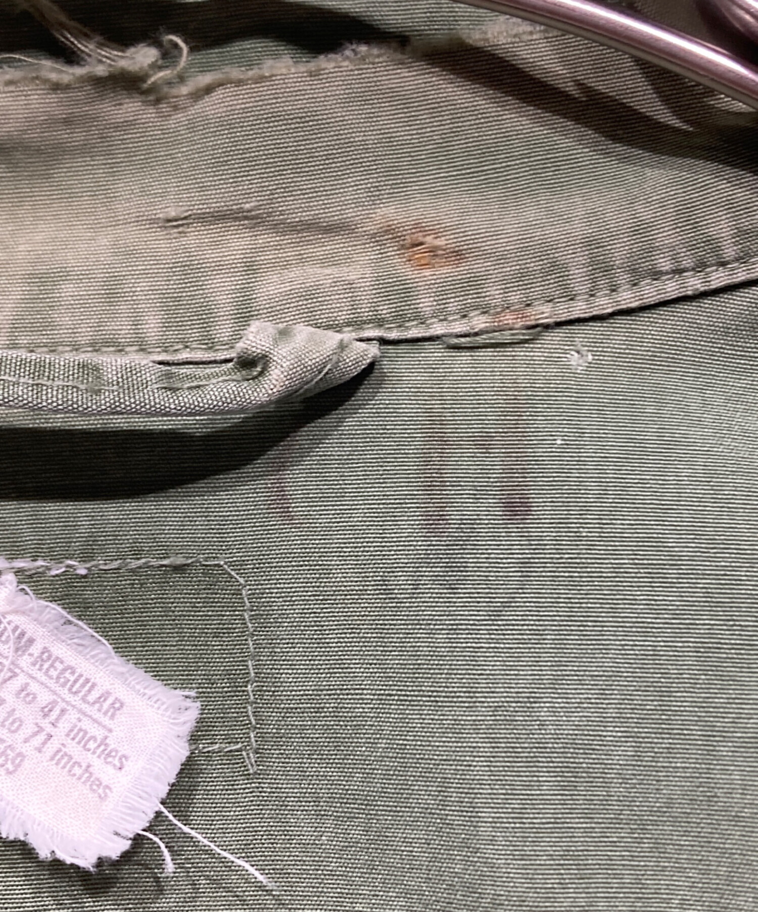 • US ARMY(ユーエスアーミー)US ARMY (ユーエスアーミー) ジャングルファティーグジャケット グリーン サイズ:MEDIUMの古着・服飾アイテム 脇下小ホツレ