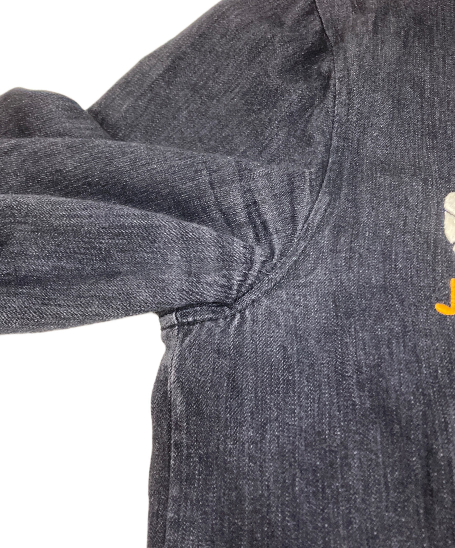 • RUDE GALLERY(ルードギャラリー)RUDE GALLERY (ルードギャラリー) スカル刺繍デニムベトジャン ブラック サイズ:3の古着・服飾アイテム 袖裏ヨゴレ